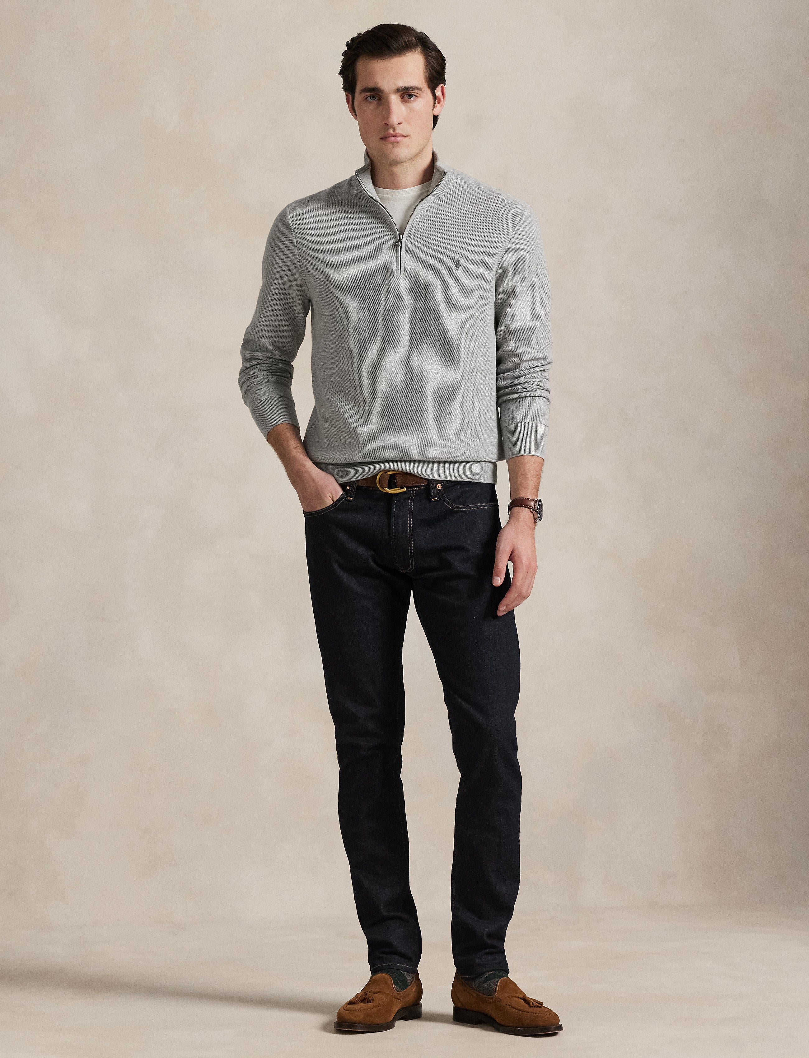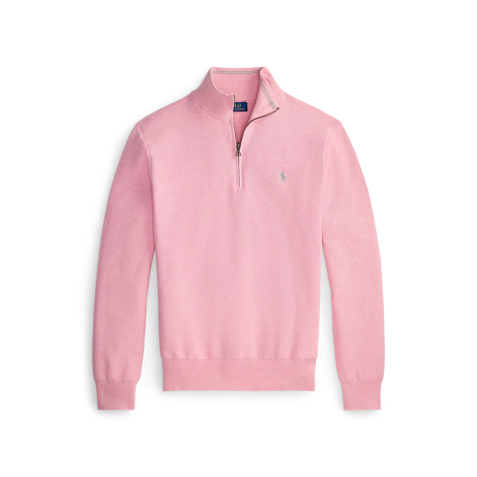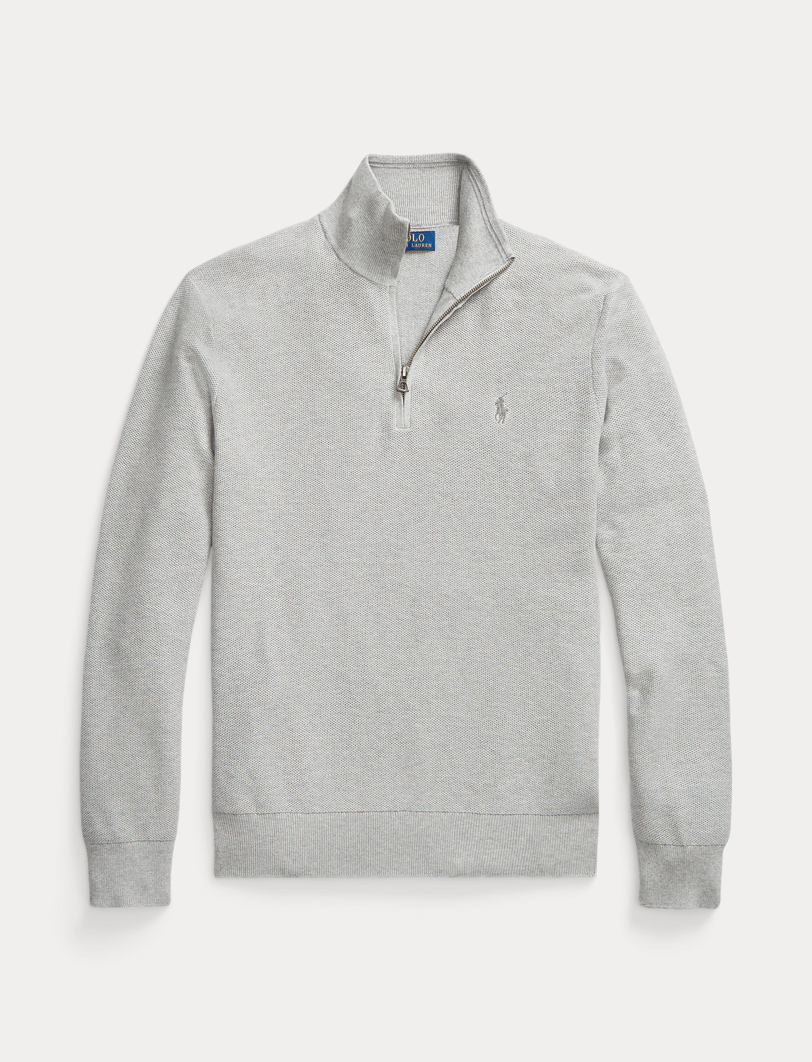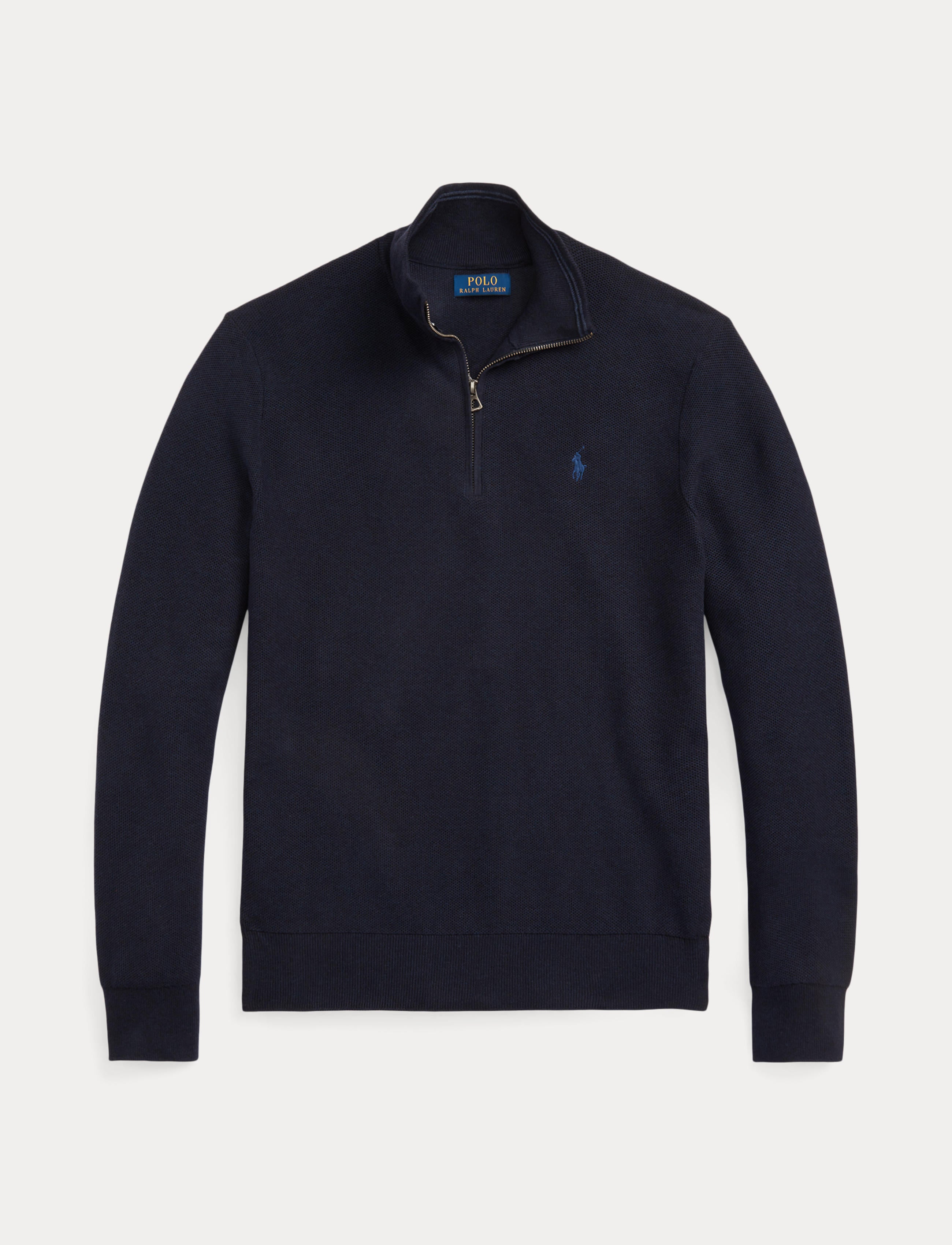 Ralph Lauren Mesh-Knit Cotton Quarter-Zip Sweater
