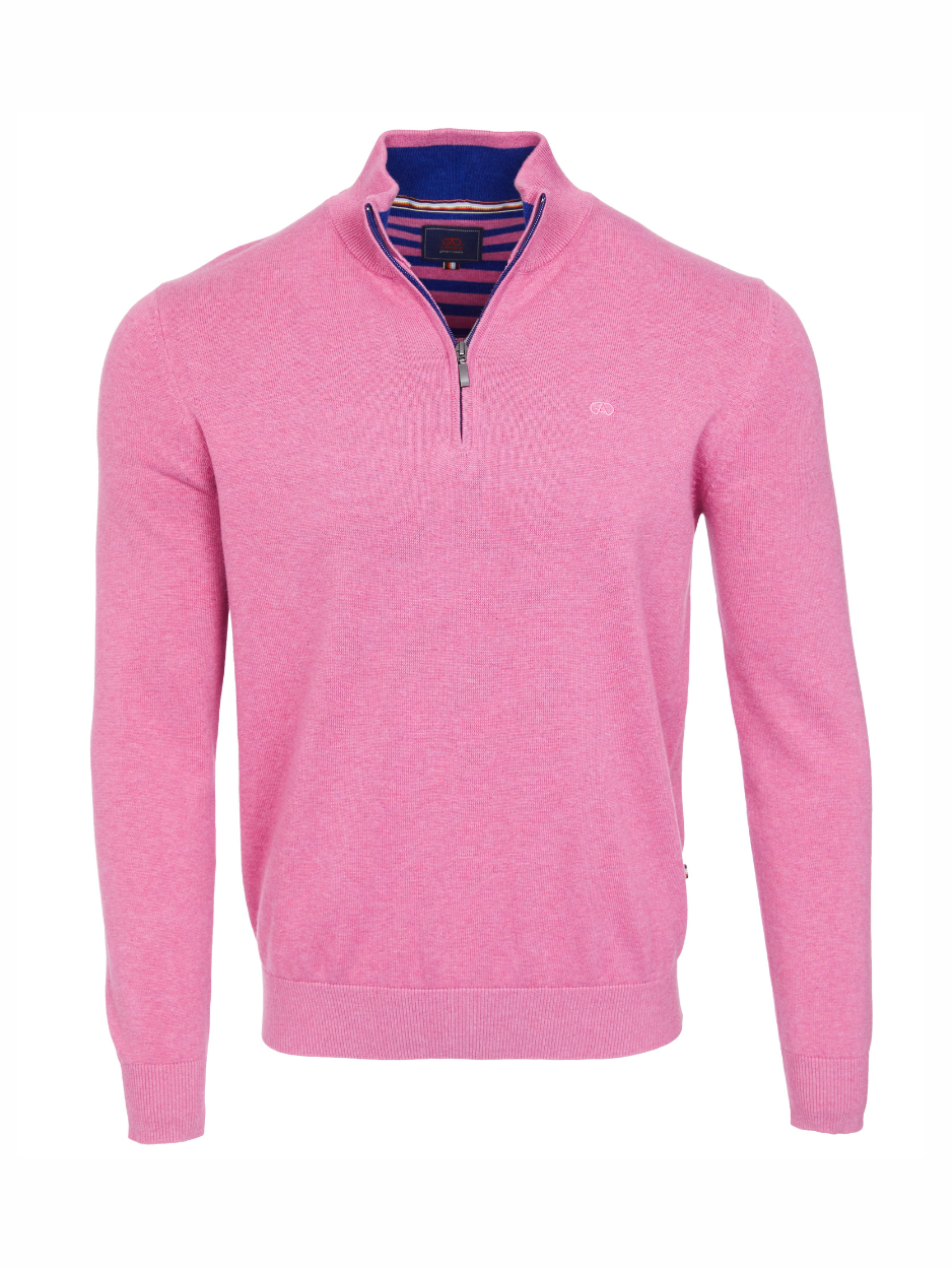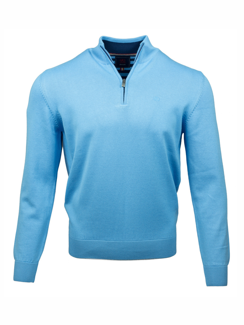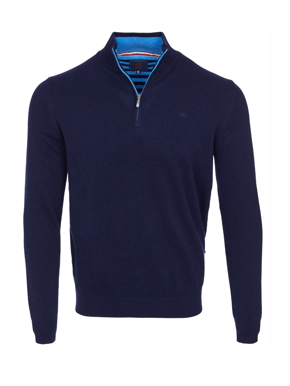 Elevate your wardrobe with the Andre Adare Half Zip Sweater. This smart and versatile long sleeve men's jumper features a woven rib detail and contrast trim on the neck opening for a distinguished look. The chest embroidered Andre logo adds a touch of sophistication. Made from soft cotton fabric, this classic half zip knit jumper offers both style and comfort in a regular fit. Perfect for pairing with a shirt or crisp white t-shirt.