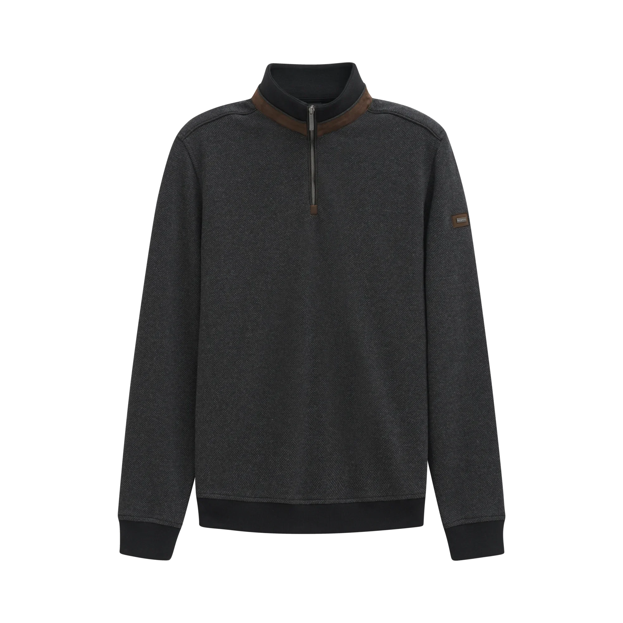 This Bugatti 1/4 zip sweatshirt comes in brown and black, giving it a modern look that stands out while remaining timeless.