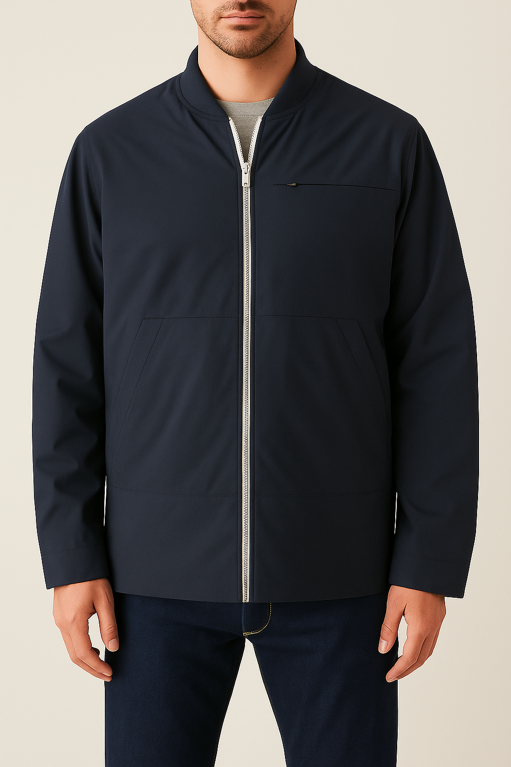 The Diffney Bologna Jacket is a lightweight casual jacket designed for summer wear. Featuring a bomber-style collar and a zipped hood, it offers both style and practicality. Its breathable fabric ensures comfort during warmer days, while the hood provides added protection when needed. Ideal for effortless layering, this jacket combines contemporary design with functional details for a versatile wardrobe staple.