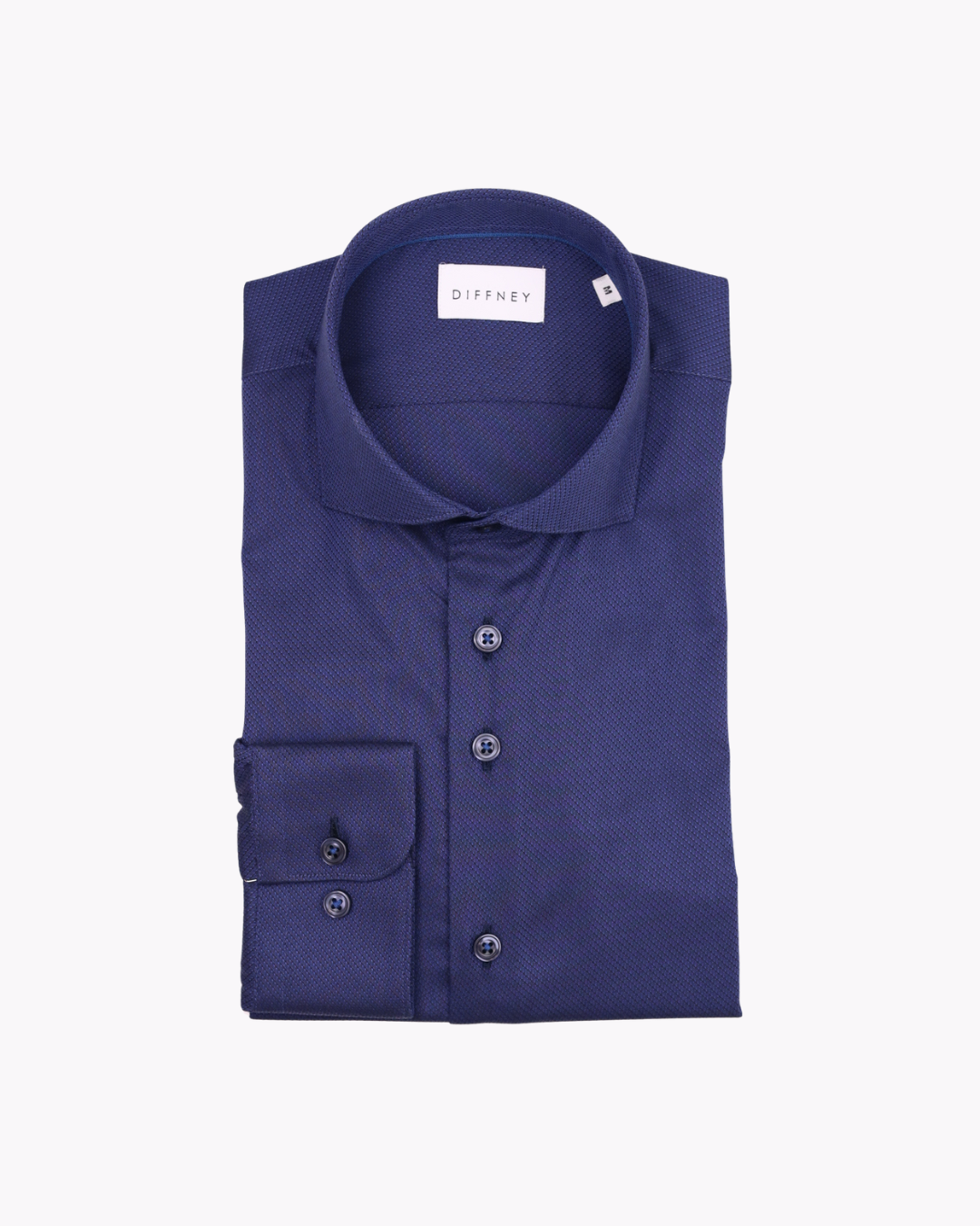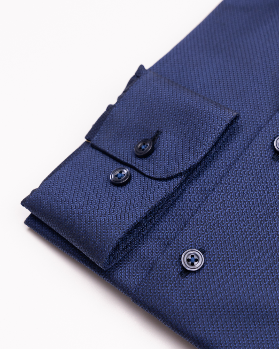 This Navy blue shirt crafted from 100% cotton, features a subtle micro check pattern that adds texture and sophistication without overpowering your look while the modern cut ensures a sharp silhouette.