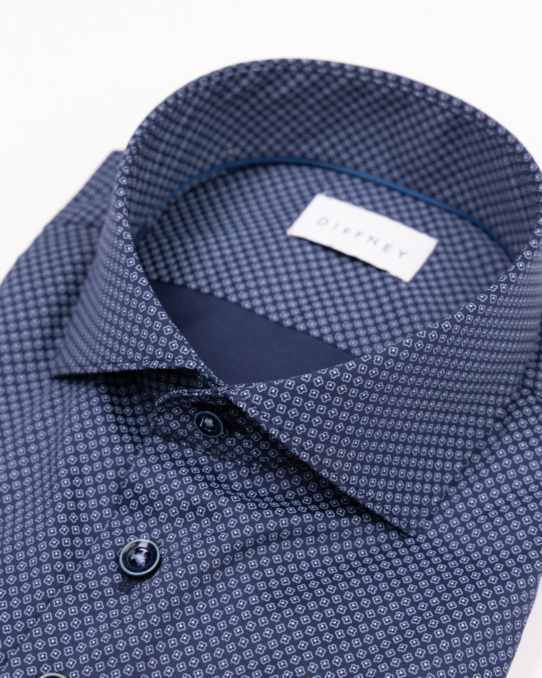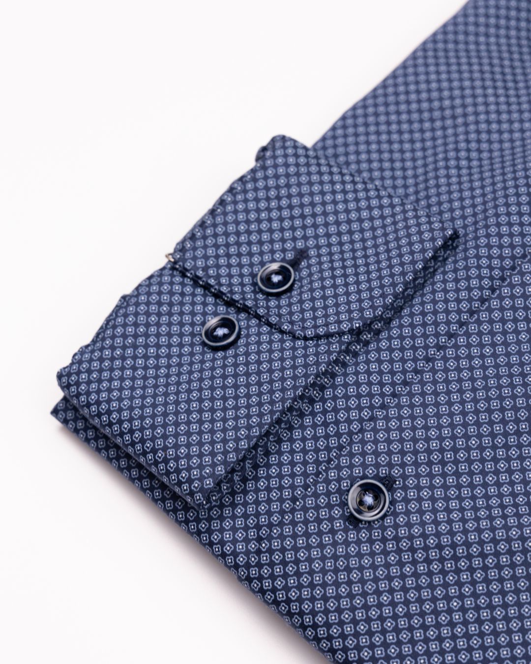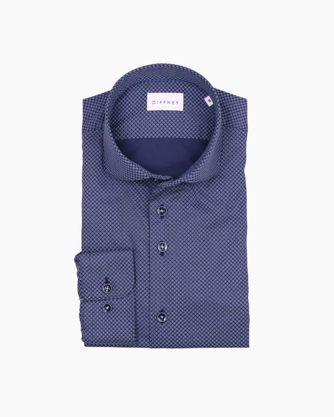 This Navy shirt crafted from 100% cotton, features a subtle geometric micro-pattern that adds texture and sophistication without overpowering your look while the modern cut ensures a sharp silhouette.