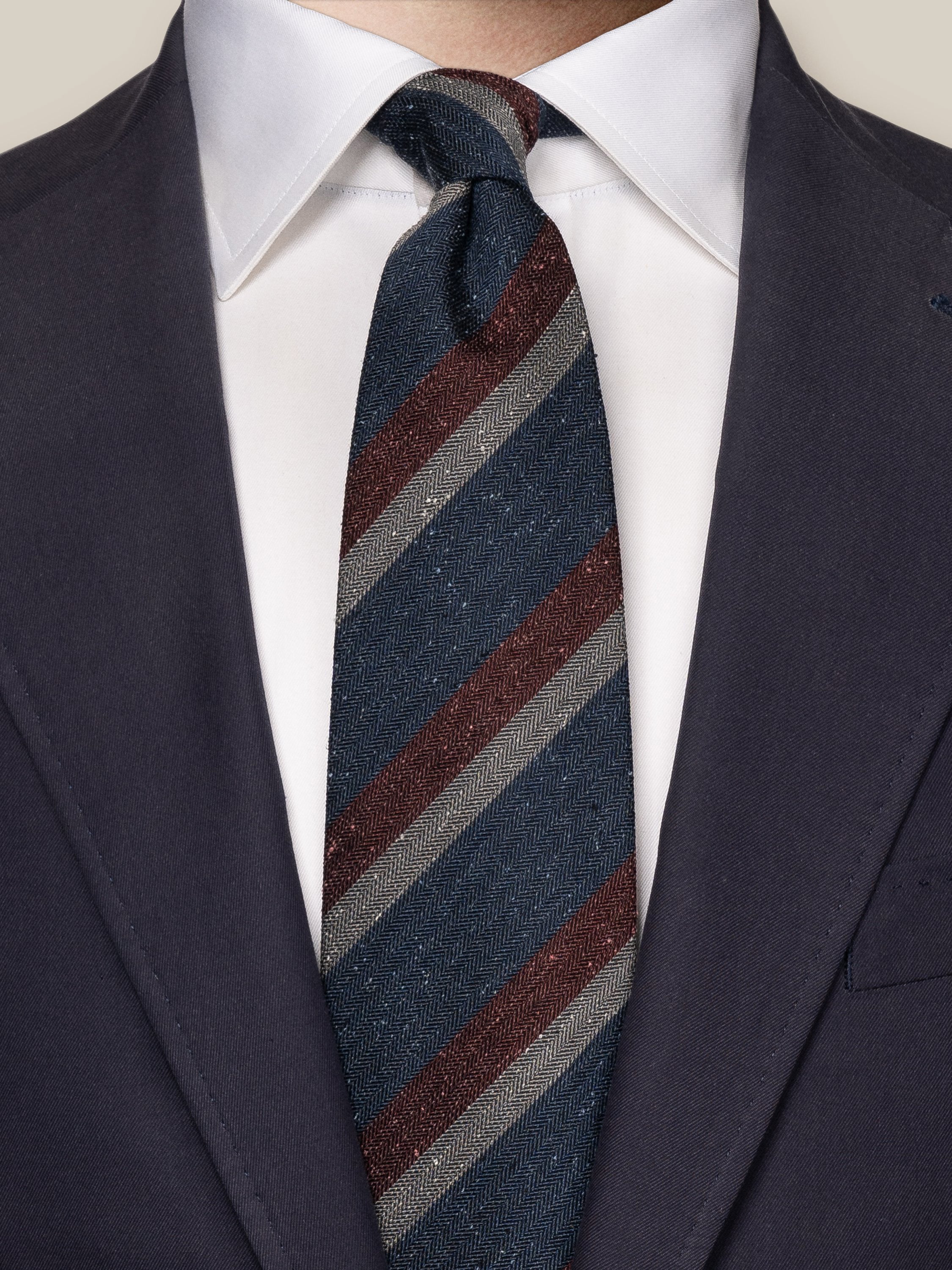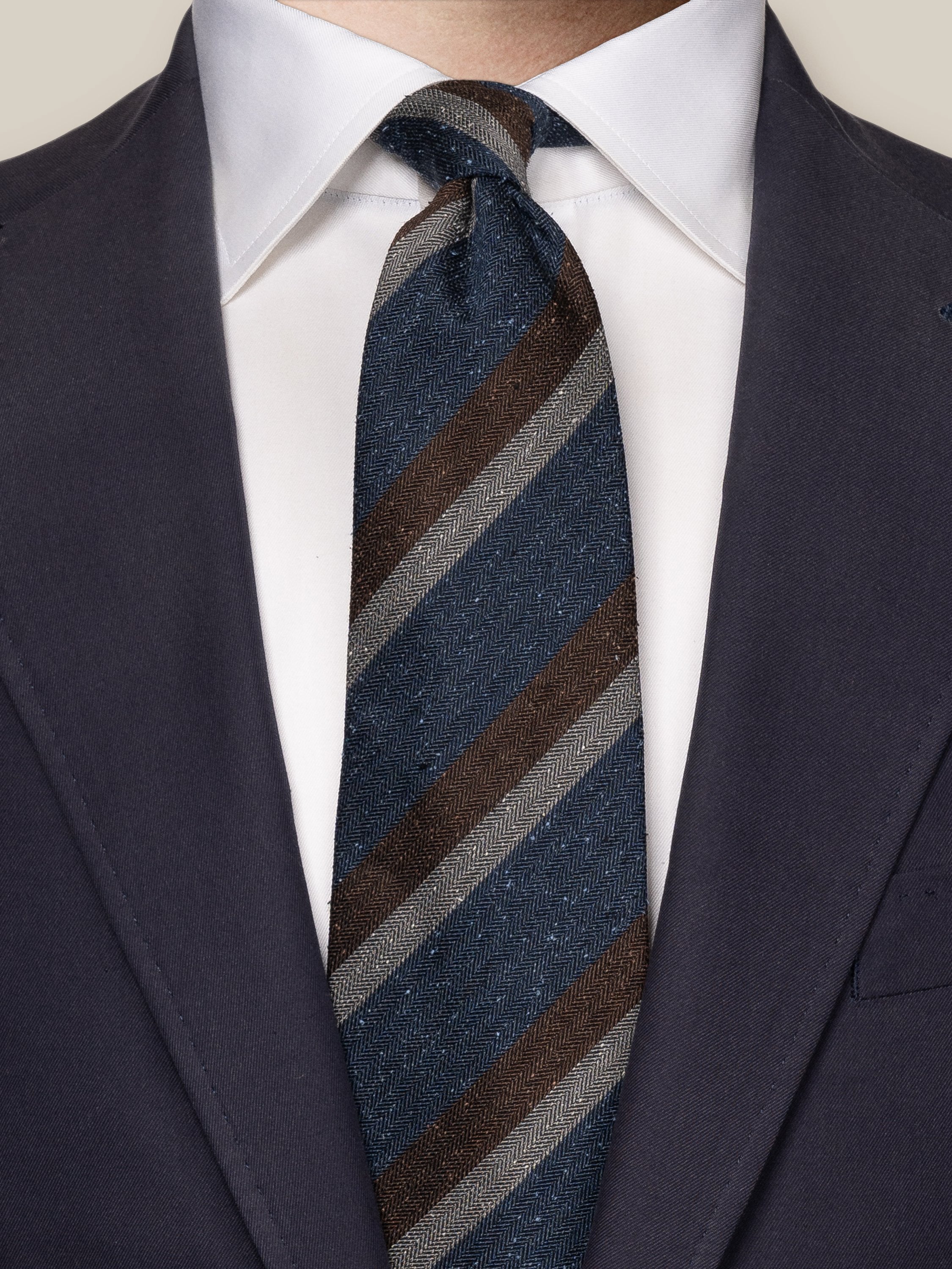 Enhance your semi-casual style with the Eton Striped Wool, Silk, and Linen Tie. Made in Italy with a rich texture, this versatile tie is perfect for special occasions. Made from a blend of cotton, silk, and linen, it is sure to elevate your most suits.