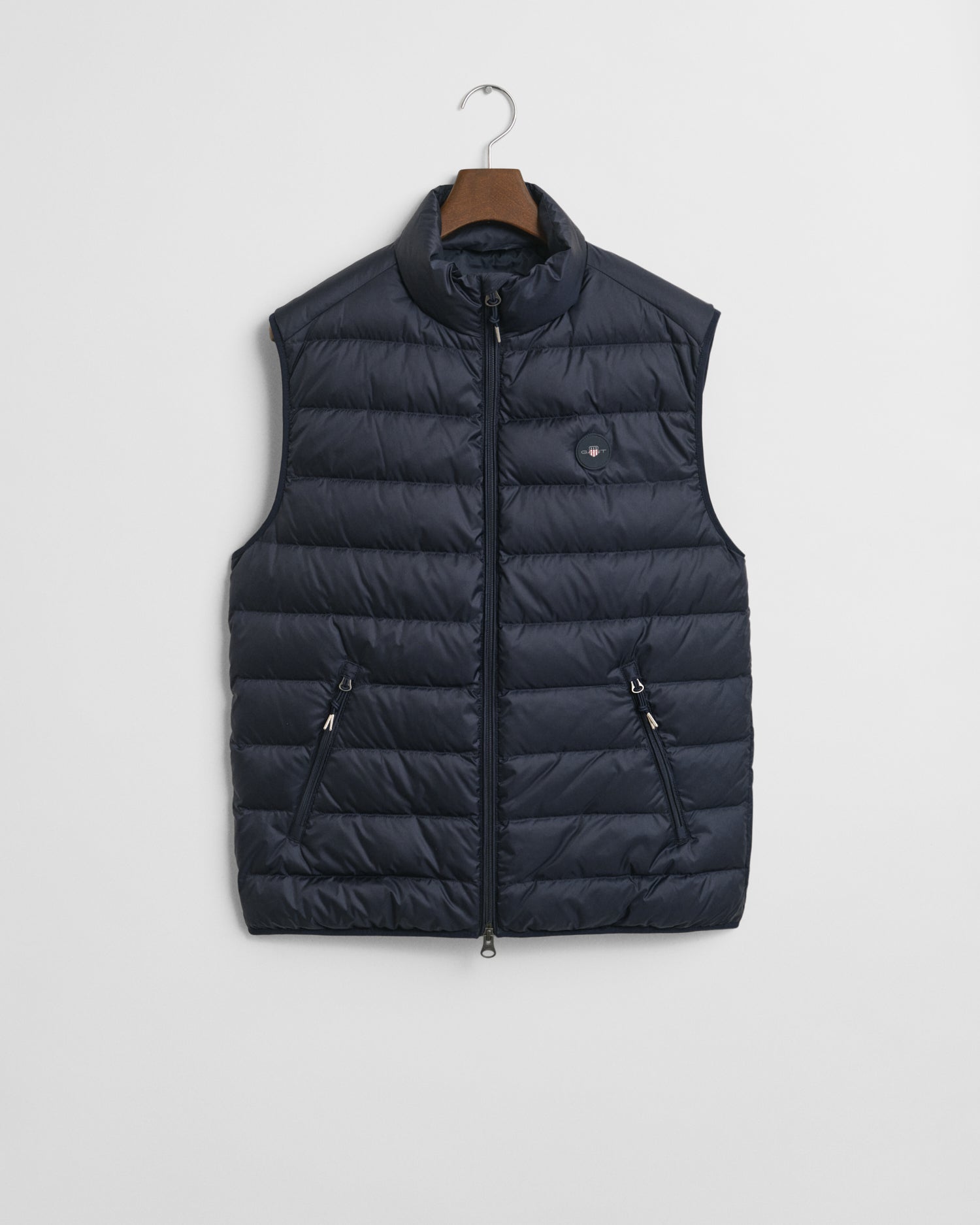 The GANT Light Down Vest is a versatile layering essential, perfect for year-round wear. Crafted from super-light recycled polyester with a water-repellent finish, it’s filled with 90% down and 10% feathers for lightweight warmth and 650-fill-power insulation. Designed in a regular fit that sits just above the hips, it features a stand-up collar, angled welt pockets, a two-way zipper, and a rubber badge on the chest. With sustainability in every layer, recycled shell and lining, plus certified down and feathers, this vest combines function, style, and responsibility. Finished with a Durable Water Repellent (DWR) treatment, it sheds light rain and can be reactivated after washing to maintain performance.