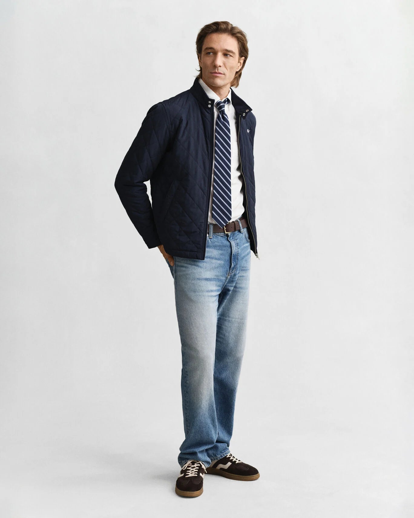 Crafted in a diamond quilting structure, the Gant Quilted Windcheater Jacket features recycled polyester padding and is treated with a water-repellent finish.