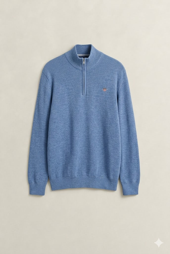 Made from an organic cotton blend, this sweater is knitted in a small waffle texture. Designed for a regular fit, it features a half-zip collar, rib endings, and shield embroidery at the chest.