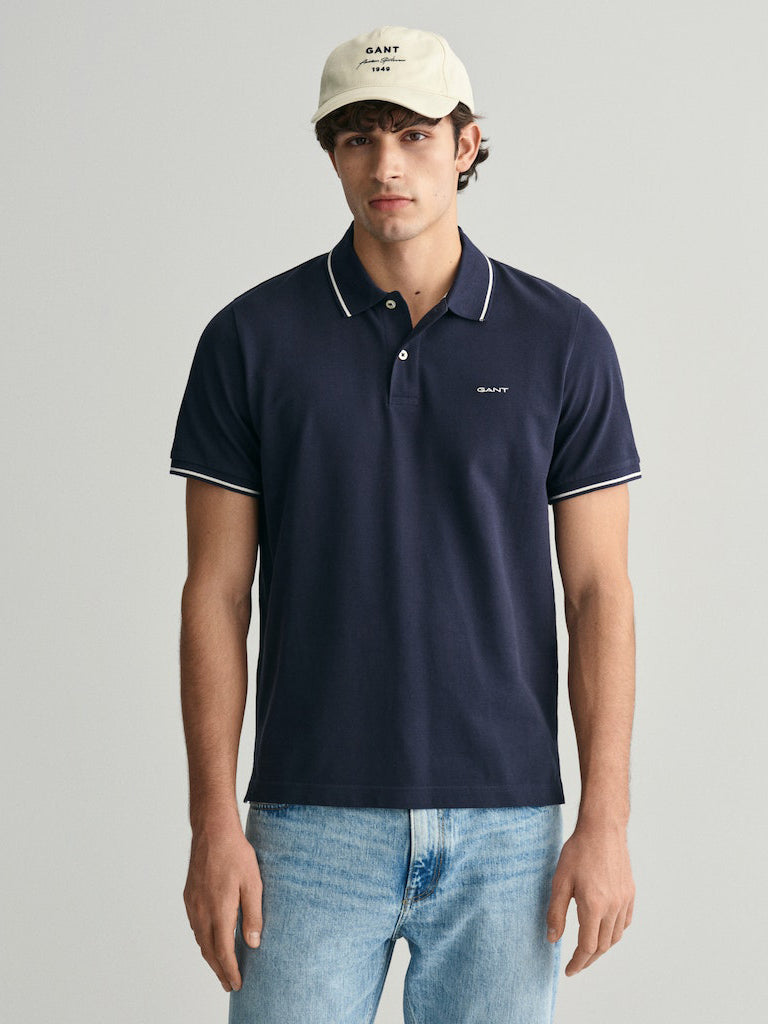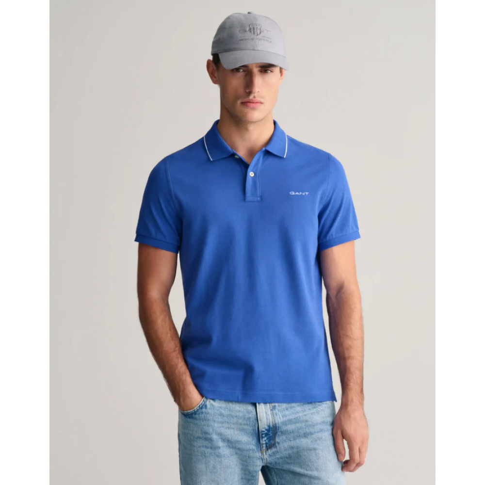 This GANT polo shirt is expertly crafted from 100% cotton with a soft piqué texture, ensuring comfort and quality. Designed with a flat knit collar, two button placket, and tipping details on the cuffs and collar for a classic look. The signature GANT logo embroidered on the chest adds a touch of sophistication.
