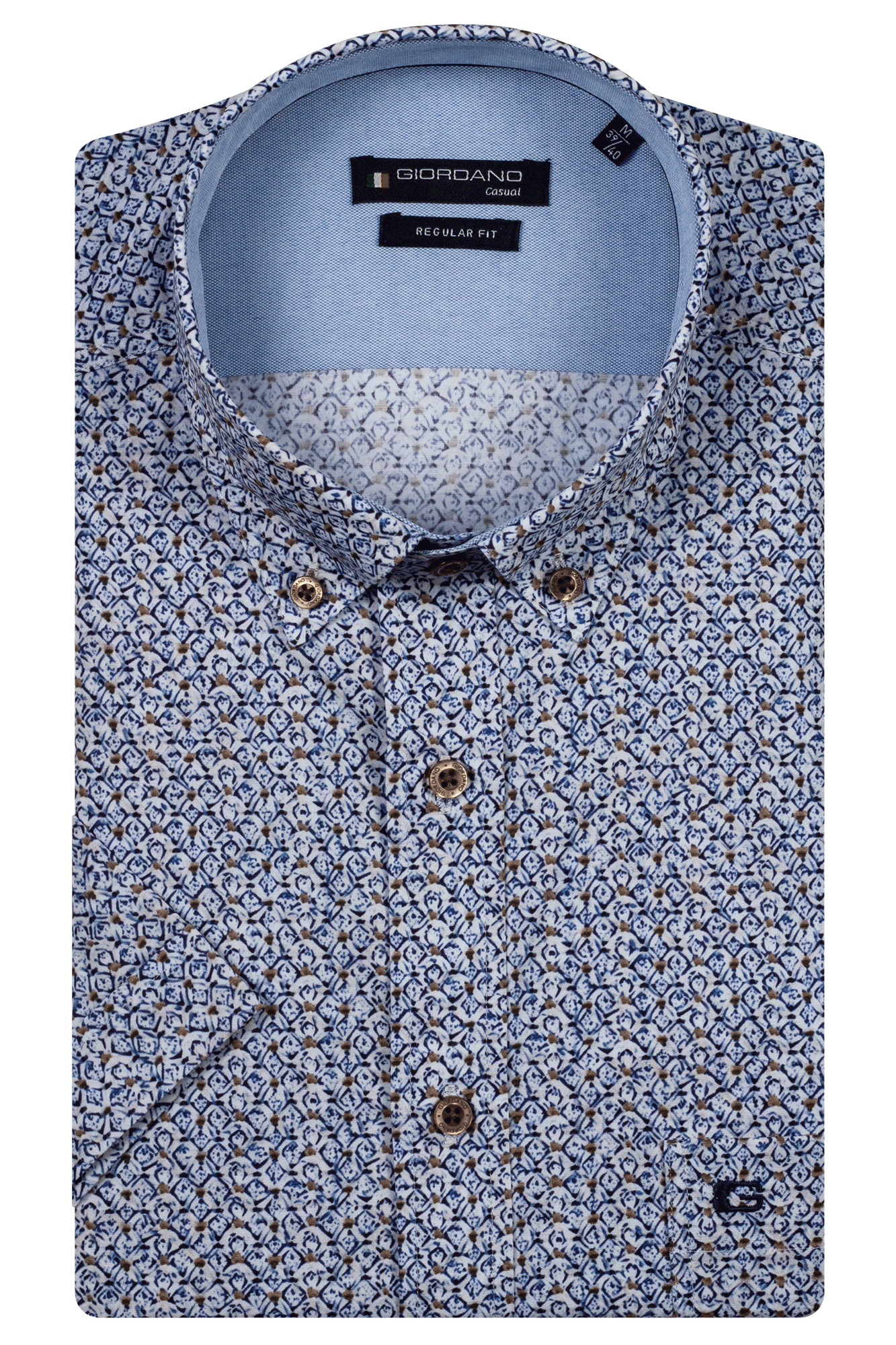 Giordano Short Sleeve Button Down Stretch Abstract Print Shirt
