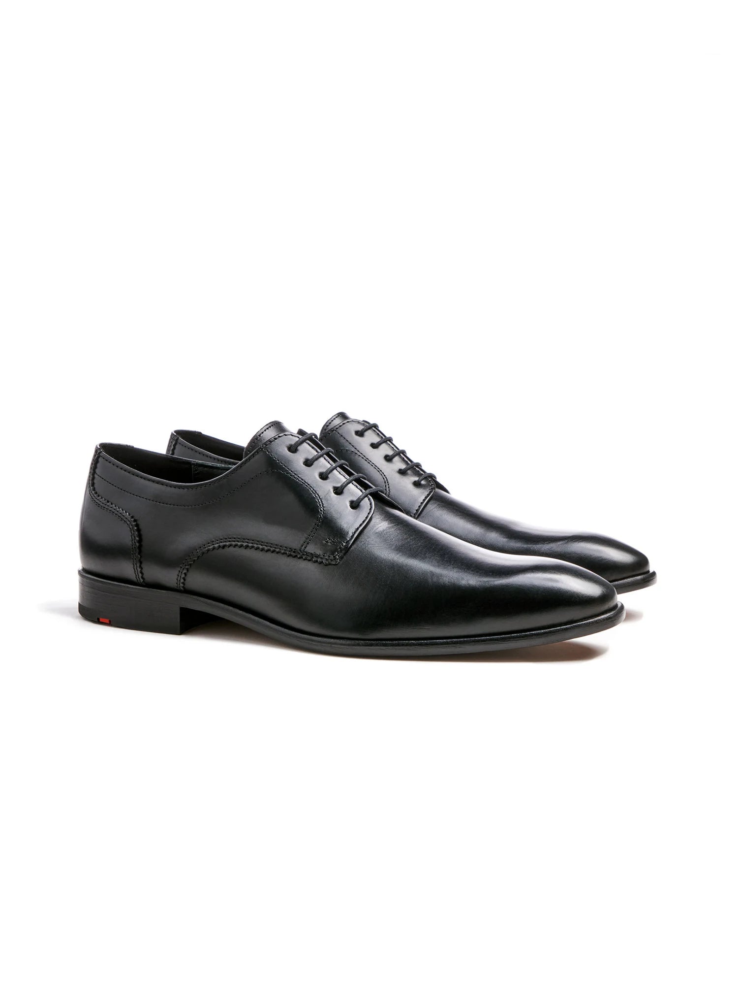 The Lloyd Pados derby shoes boast a sophisticated design, featuring smooth leather and a classic lace-up style. The tapered toe adds a touch of elegance and visually narrows the foot for a timeless look. Crafted with breathable leather sand soft inner soles, these shoes offer both comfort and style. A secure fit is achieved through the lacing and the soft, smooth leather material. Plus, the leather lining adds breathability and even more comfort.