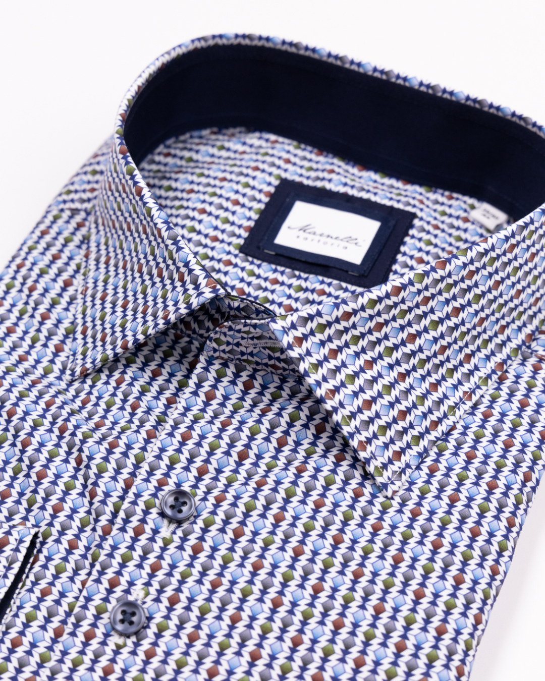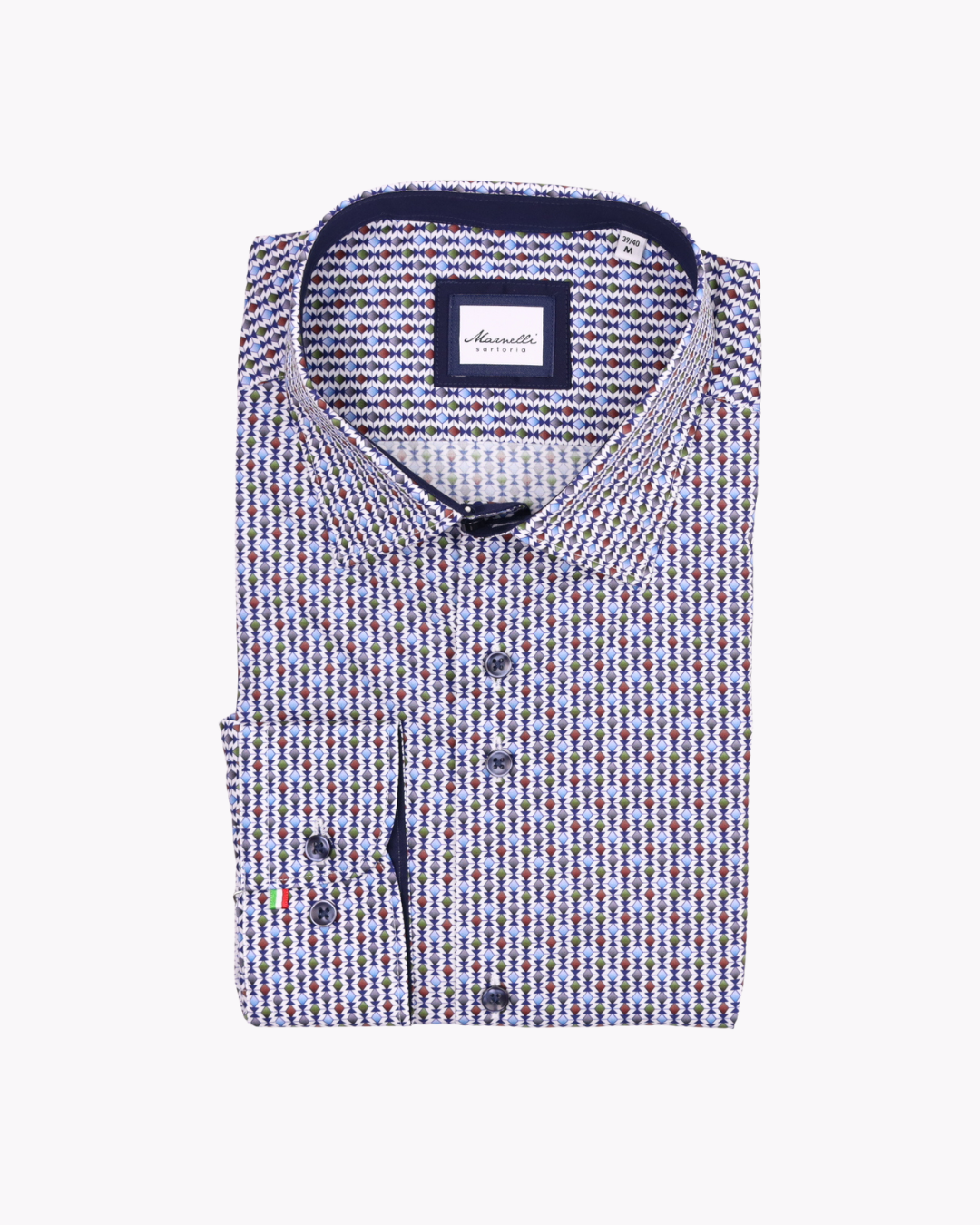 The Marnelli Diamond Print Shirt combines expert craftsmanship with distinctive style. Made from breathable cotton, this multicolour winter shirt features a subtle diamond print and a hidden button-under-collar design for a refined silhouette. Ideal for layering in cooler months, it offers both comfort and sophistication, making it a versatile addition to any wardrobe.