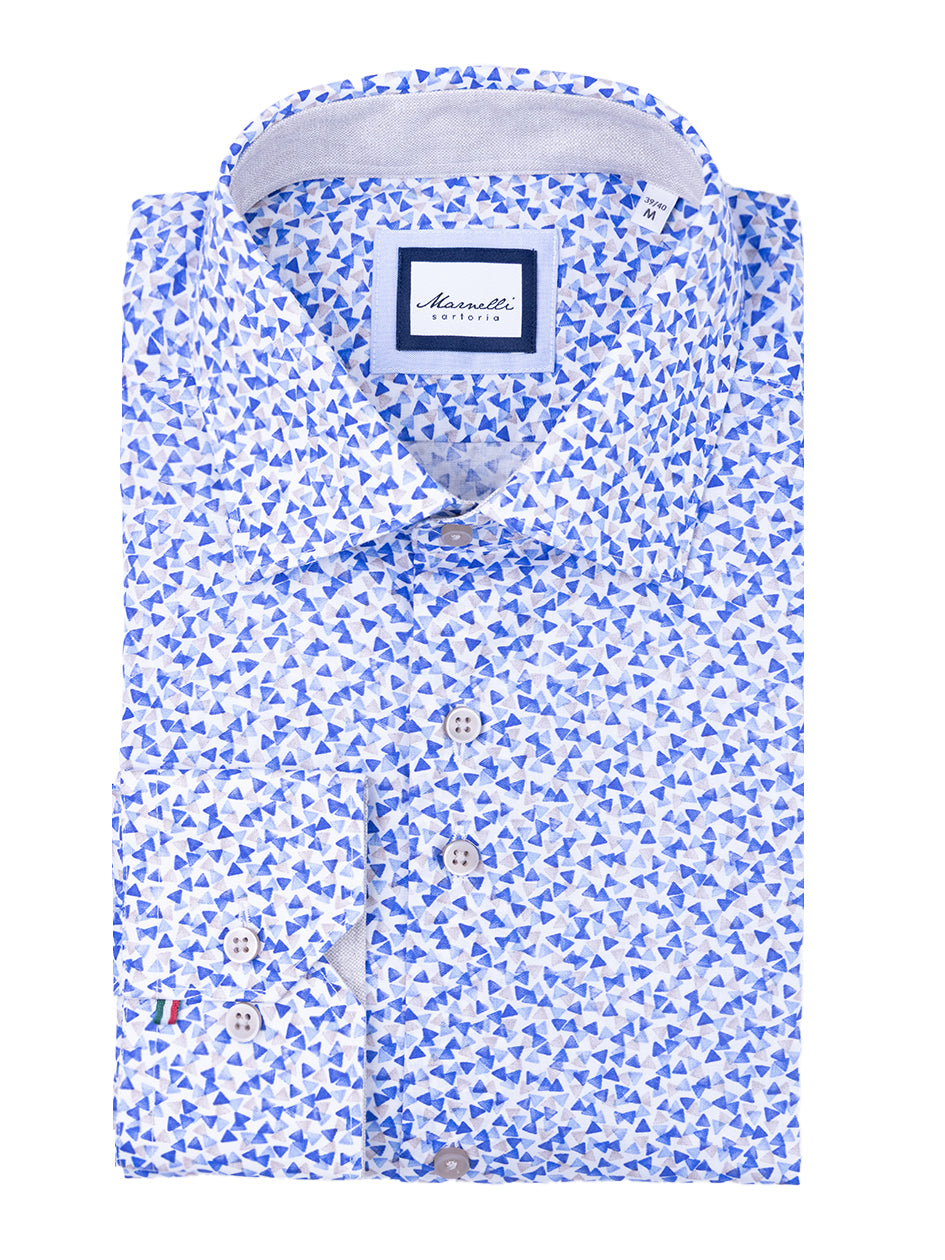 Elevate your wardrobe with the Marnelli Joe Geo Print Shirt. Made with 100% cotton, this contemporary fit shirt offers both style and comfort. Its unique design strikes the perfect balance between a regular and slim fit, making it suitable for any occasion. Experience the pinnacle of quality and style with this versatile piece.