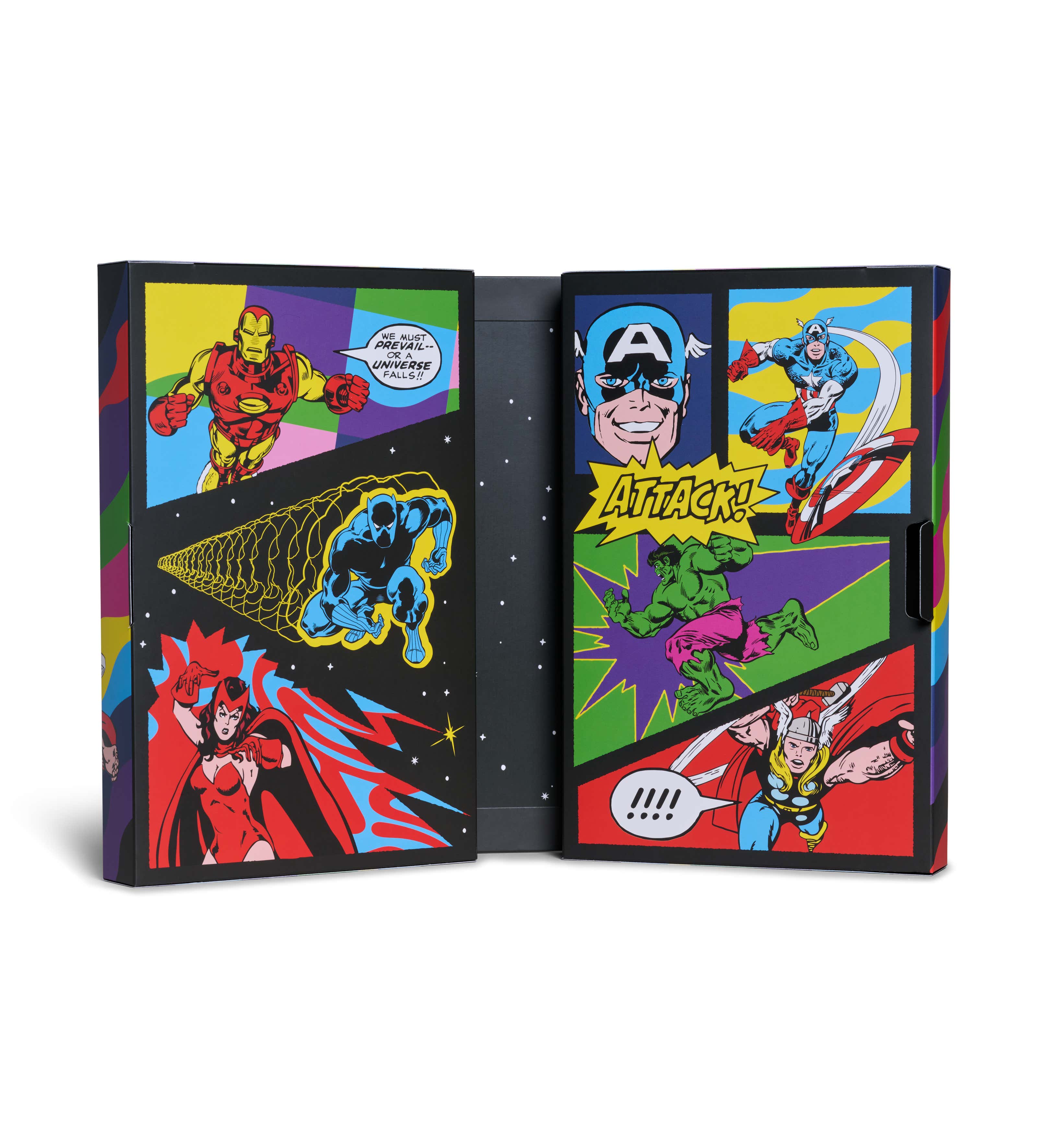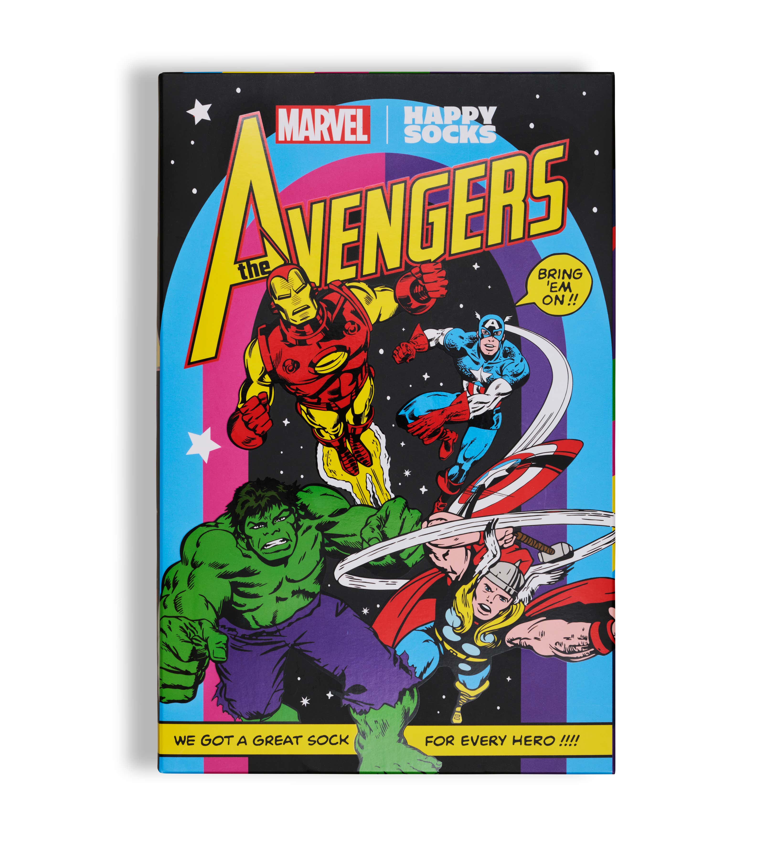 Here's a massive six-sock collector’s dream, featuring all the socks from the AVENGERS collection. The design on the box draws heavy inspiration from Jack Kirby’s distinct, pop art style, and is an homage to comic omnibuses.