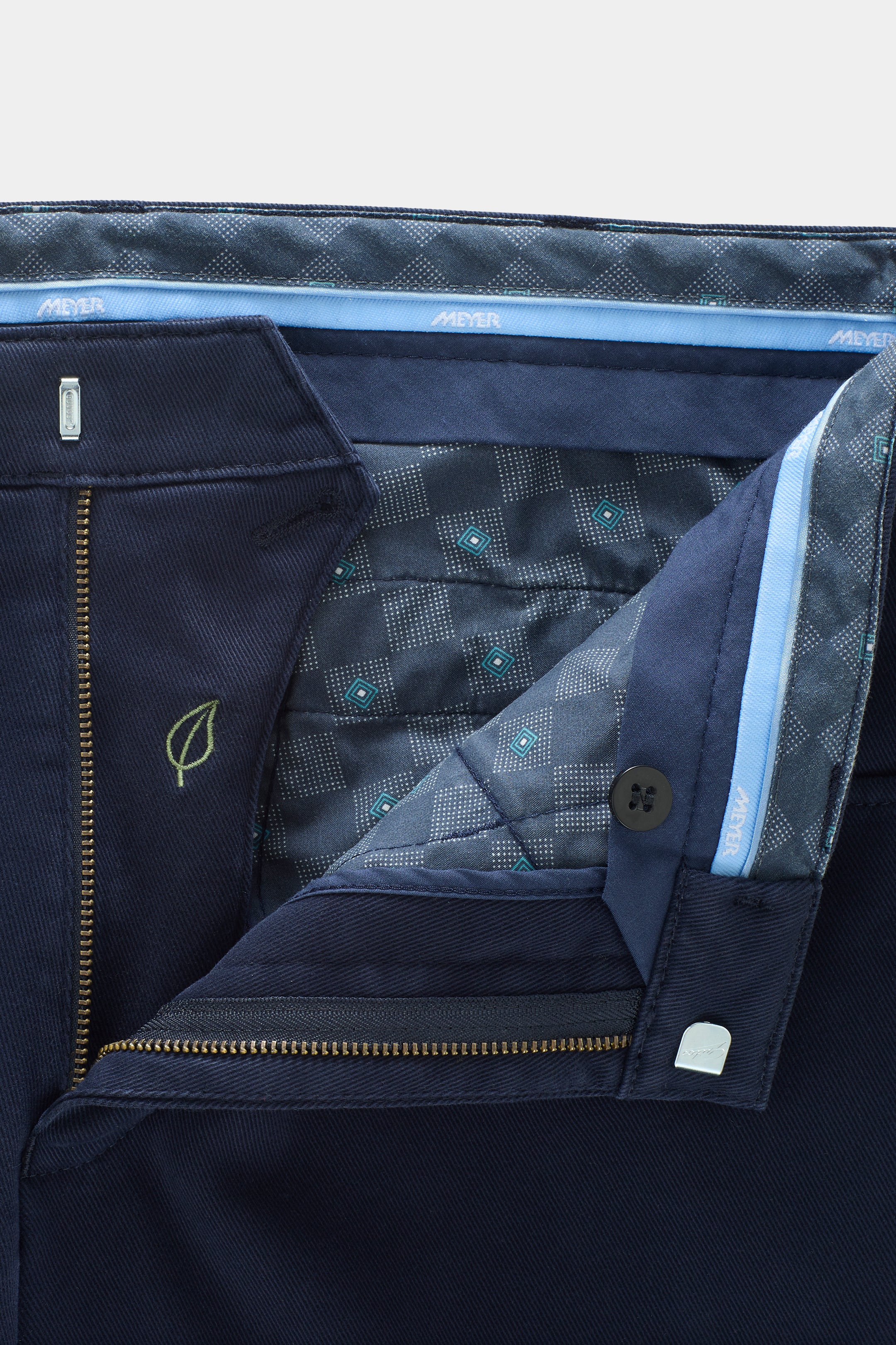 Crafted with meticulous attention to detail, the Meyer Dublin Chino delivers practical sophistication through thoughtfully designed pocketry. A swing pocket complements a dedicated coin pocket positioned on the right, while dual hip pockets feature precision stitching and button fasteners for secure storage. Built for the man who values both form and function.