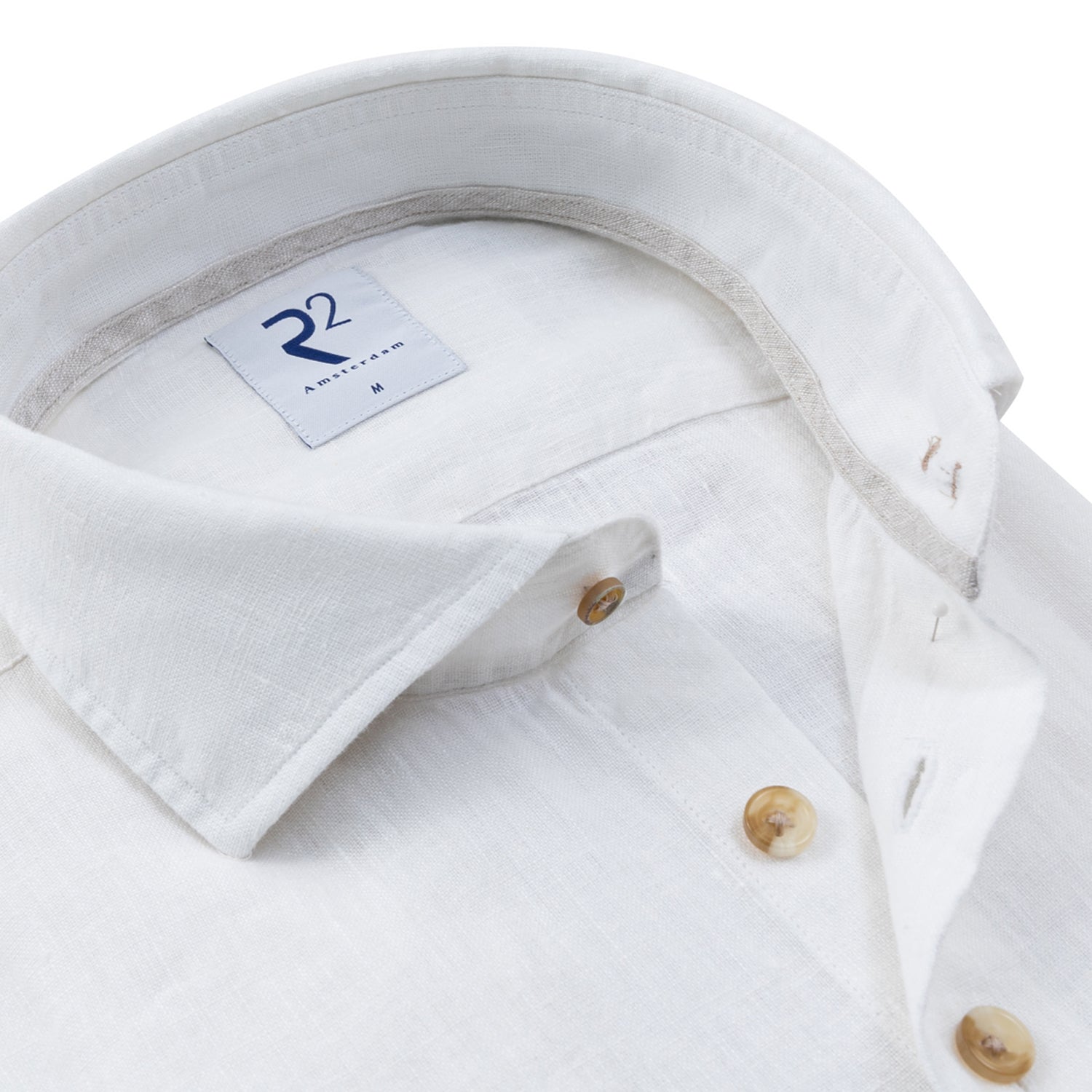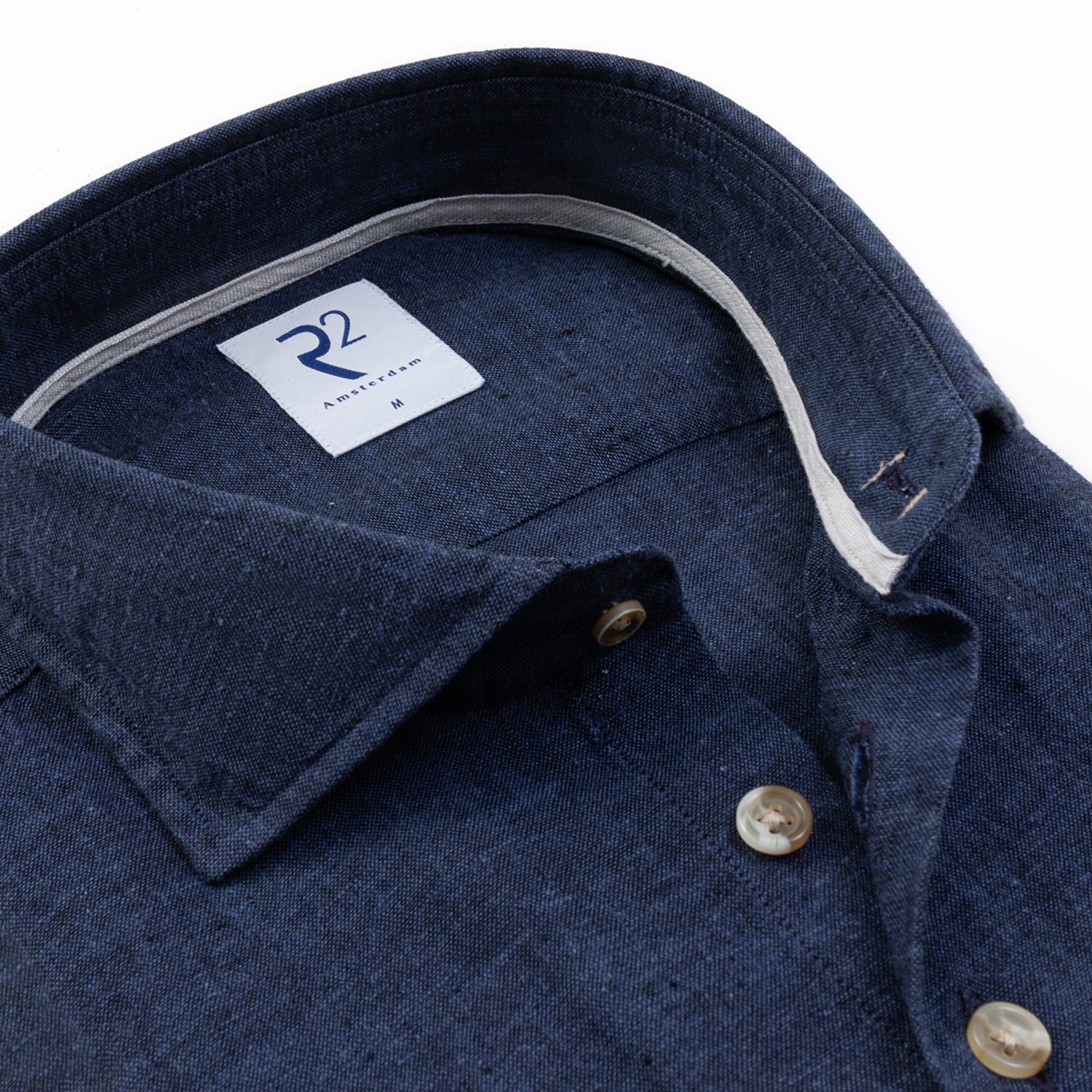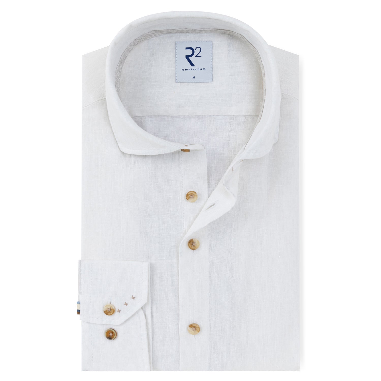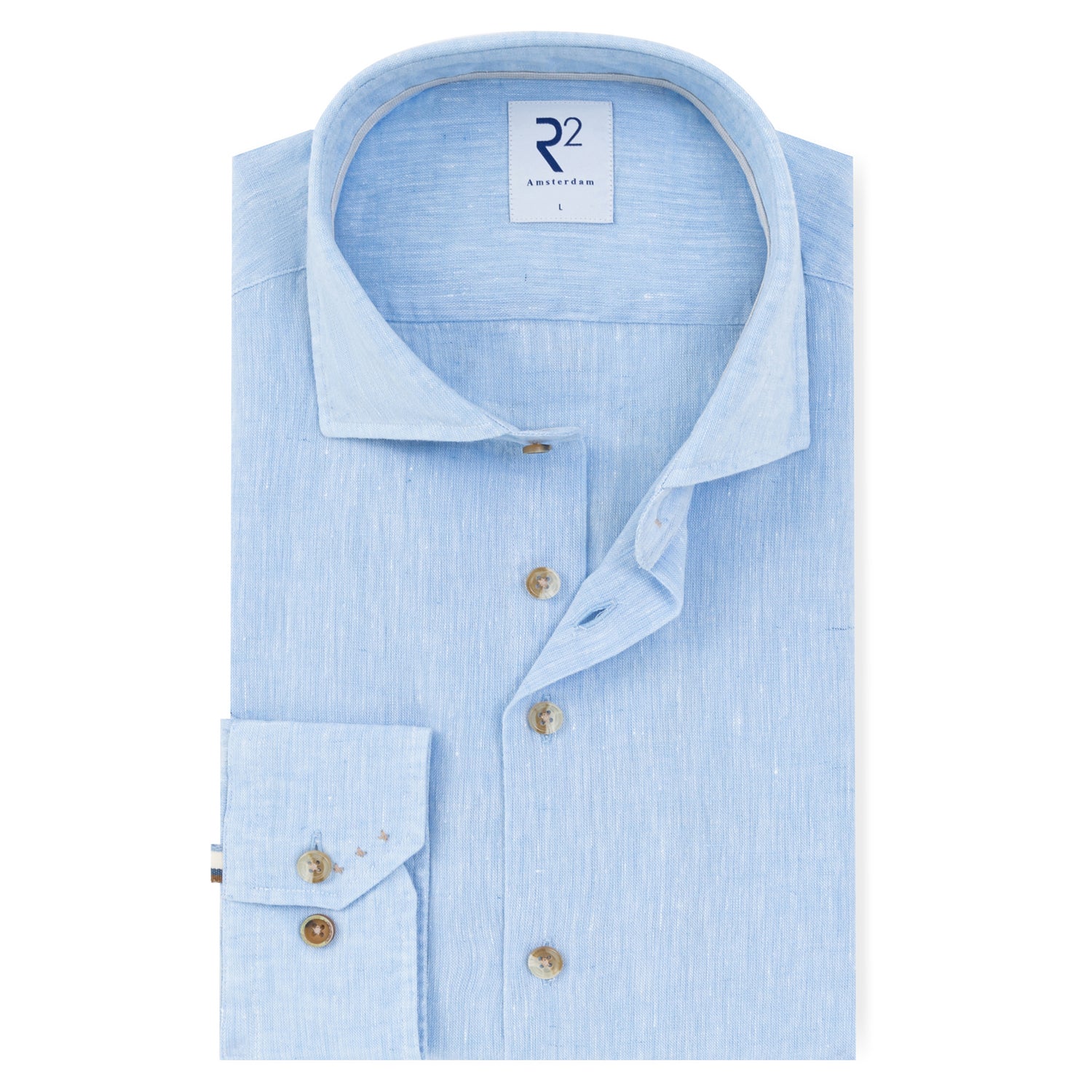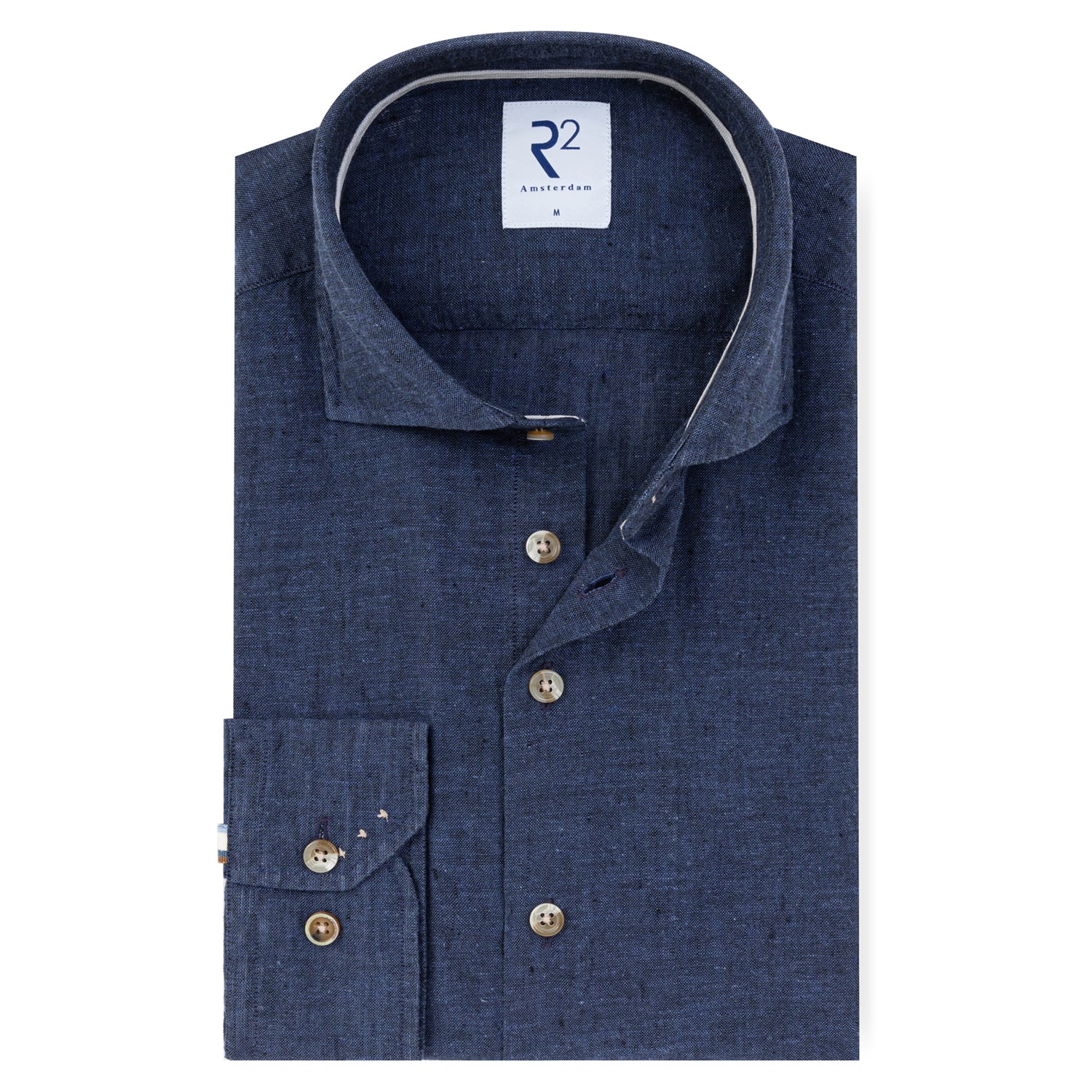 The perfect summer shirt for warm days when you still want to look sharp. Made from a linen-cotton blend that breathes well and keeps you comfortable without sacrificing a polished appearance.. The widespread collar pairs effortlessly with a jacket or open at the neck — equally at home at a summer lunch as at the office. Finished with a contrast tape on the inside of the collar — a small detail that shows R2's eye for craftsmanship.