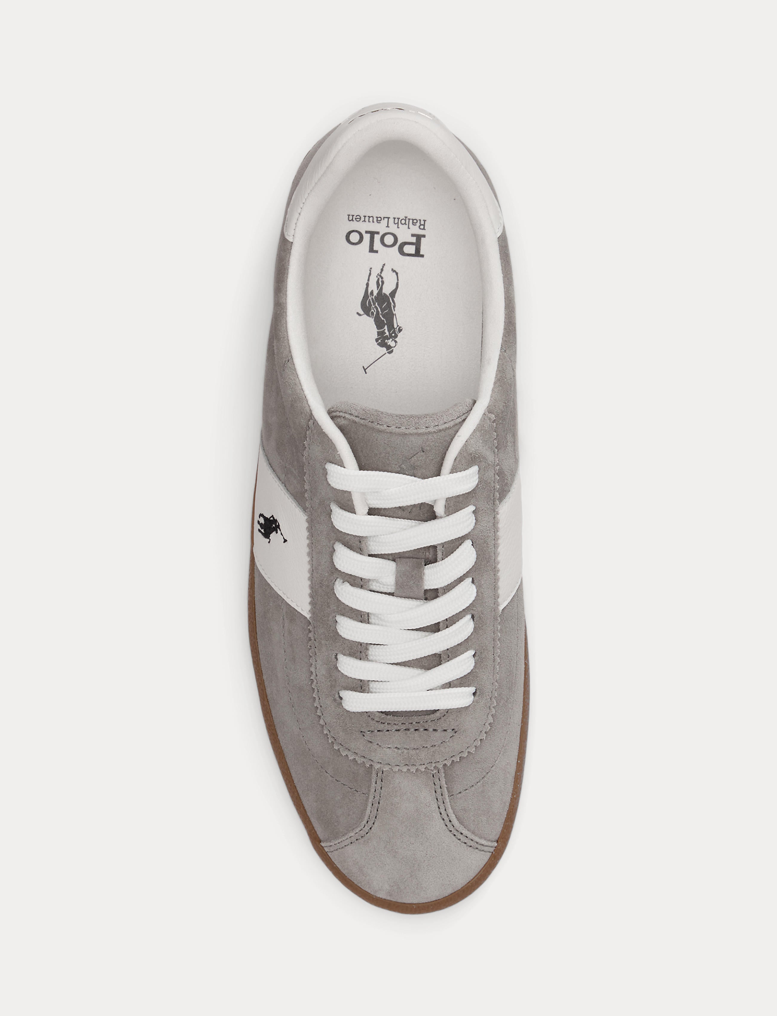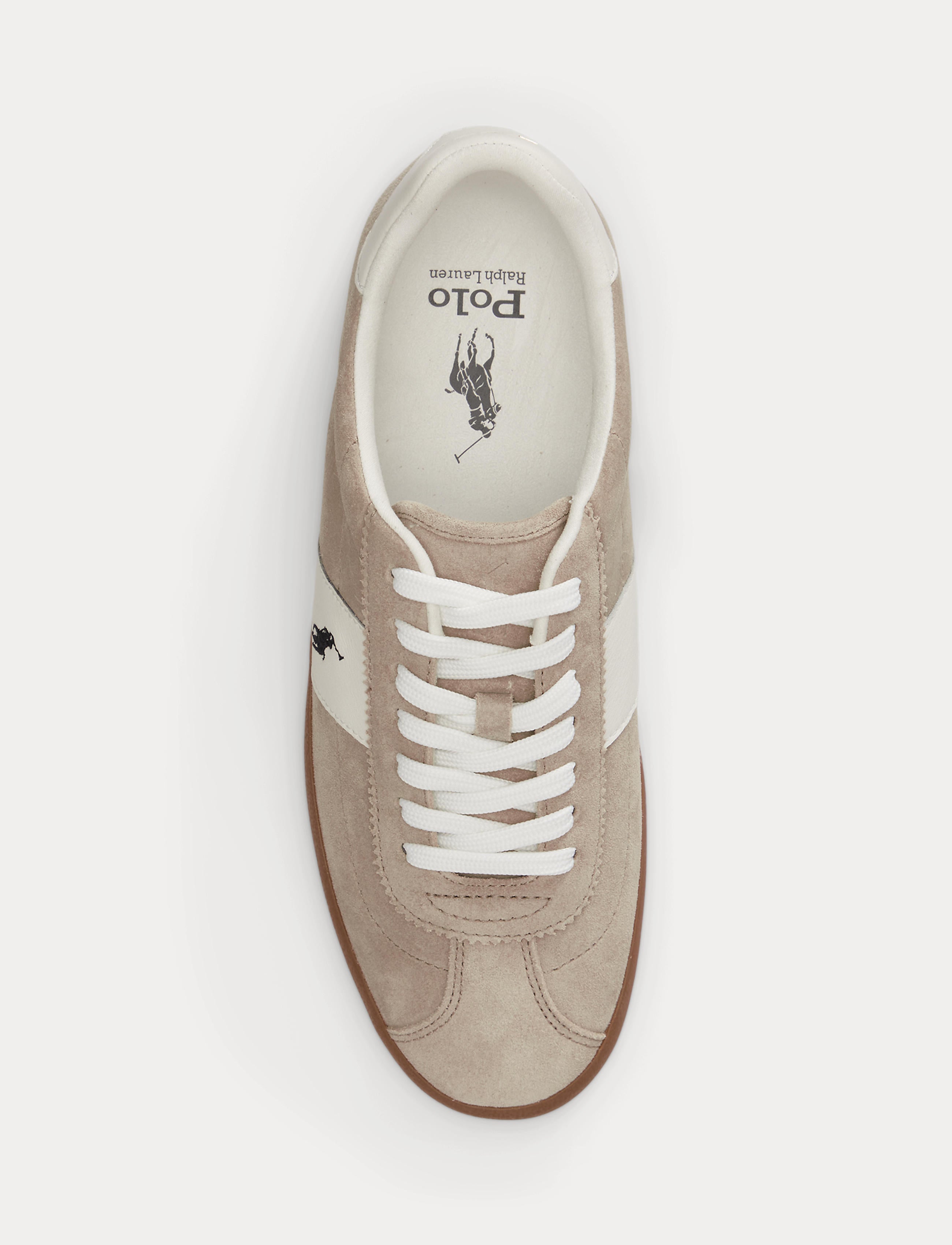 Inspired by tennis shoes from the 1980s, the Court low-profile silhouette and suede construction are elevated with pinked-edge detailing and tonal nubuck side accents. The rubber sole features a unique tread design that pays homage to Boulevard Saint-Germain – the iconic street that is home to Ralph Lauren’s Parisian flagship.