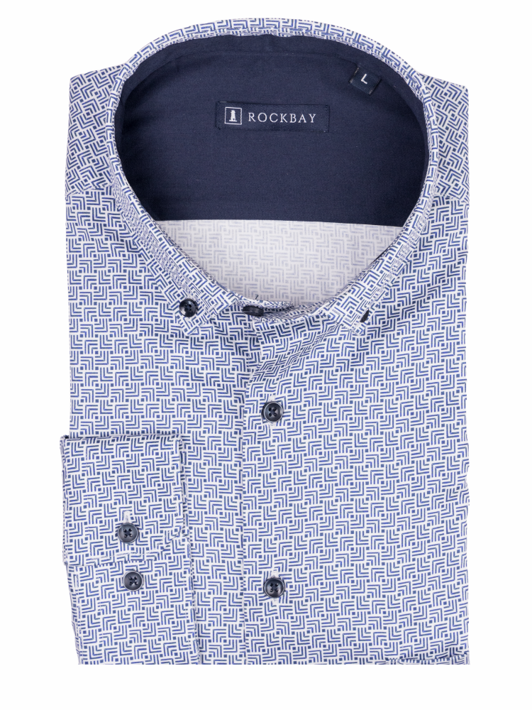 This Rockbay Blue Graphic Print Button Down Shirt is a versatile addition to your wardrobe. Made with breathable cotton and a touch of stretch, it offers both comfort and style. The navy button-down and long-sleeve design make it suitable for both smart and casual occasions. Perfect for summer days.