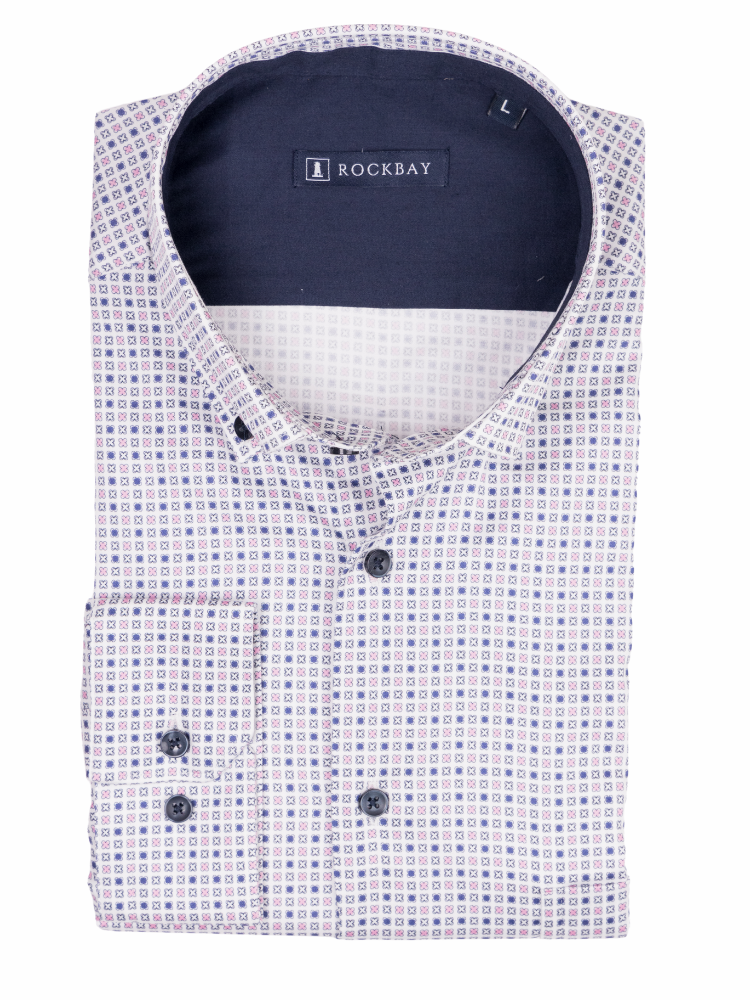 Rockbay Navy / Pink X Pattern Button Down Shirt