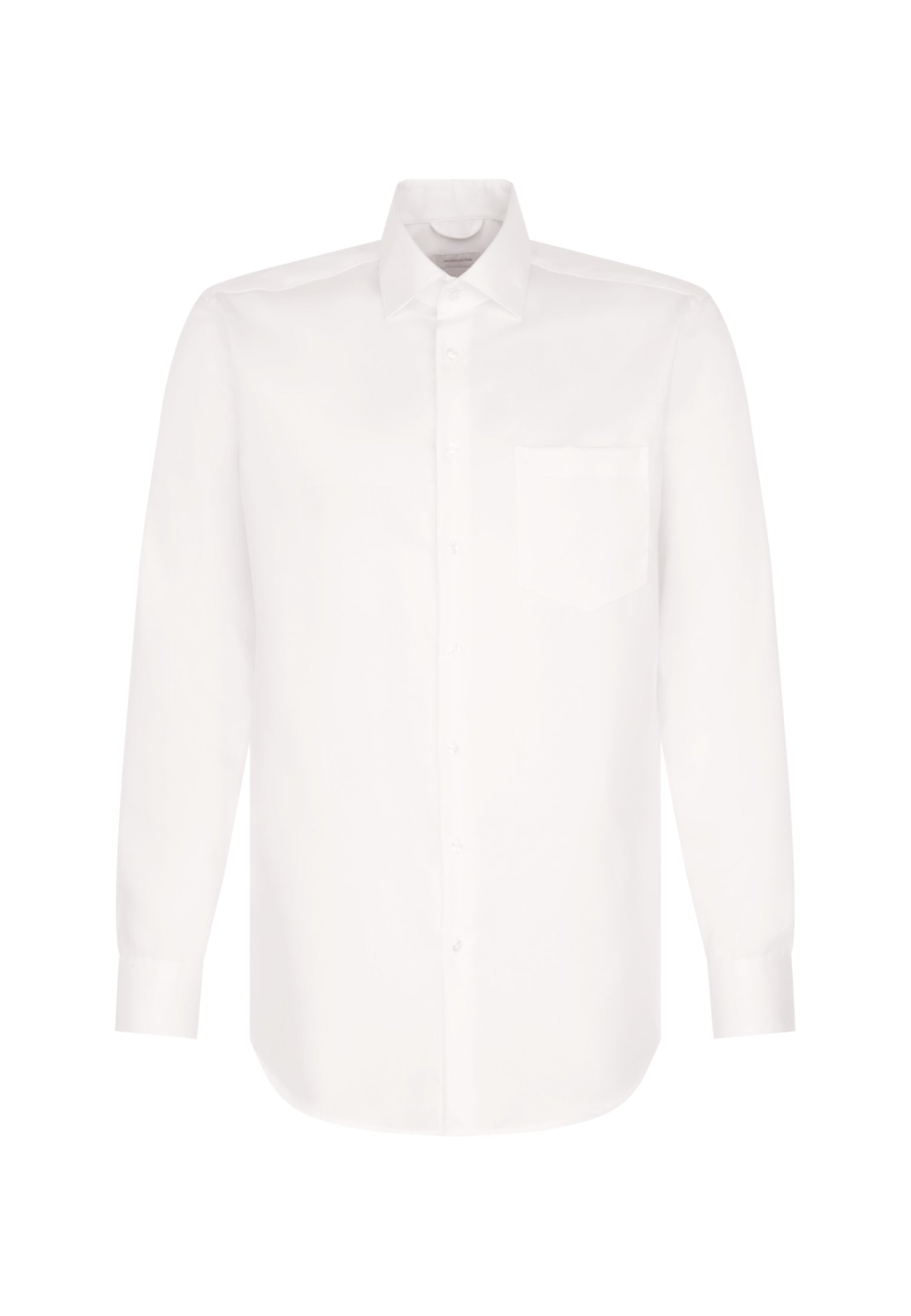 This regular-fit shirt features a timeless Kent collar and elegant twill weave that exudes professional confidence. The innovative No Iron fabric technology means you can maintain a crisp, polished appearance throughout your busiest days without the hassle of ironing. The combinable adjustable cuffs offer versatility and comfort, while the practical chest pocket adds both functionality and detail.