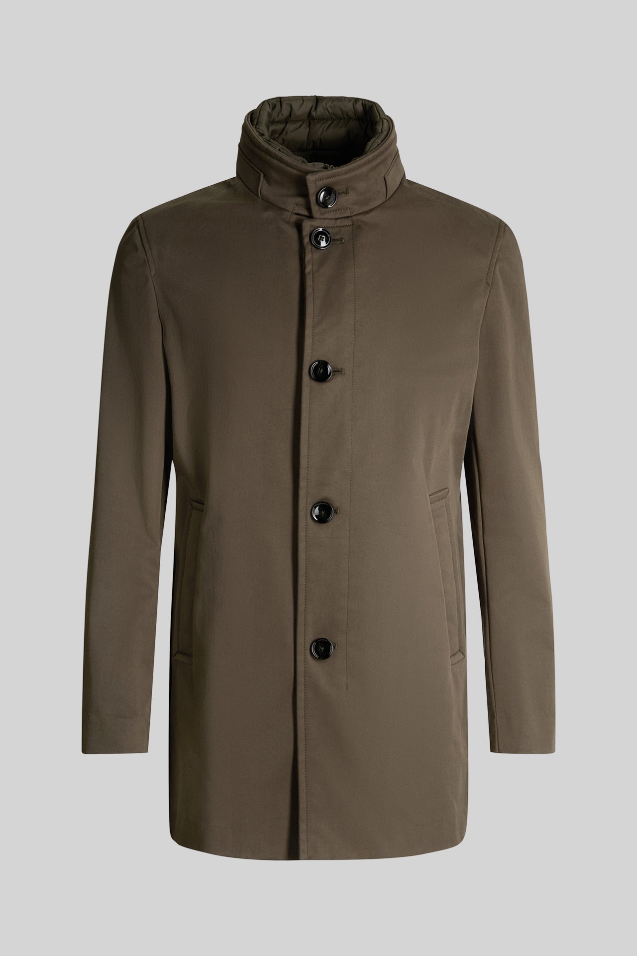- Coat with buttoned stand-up collar