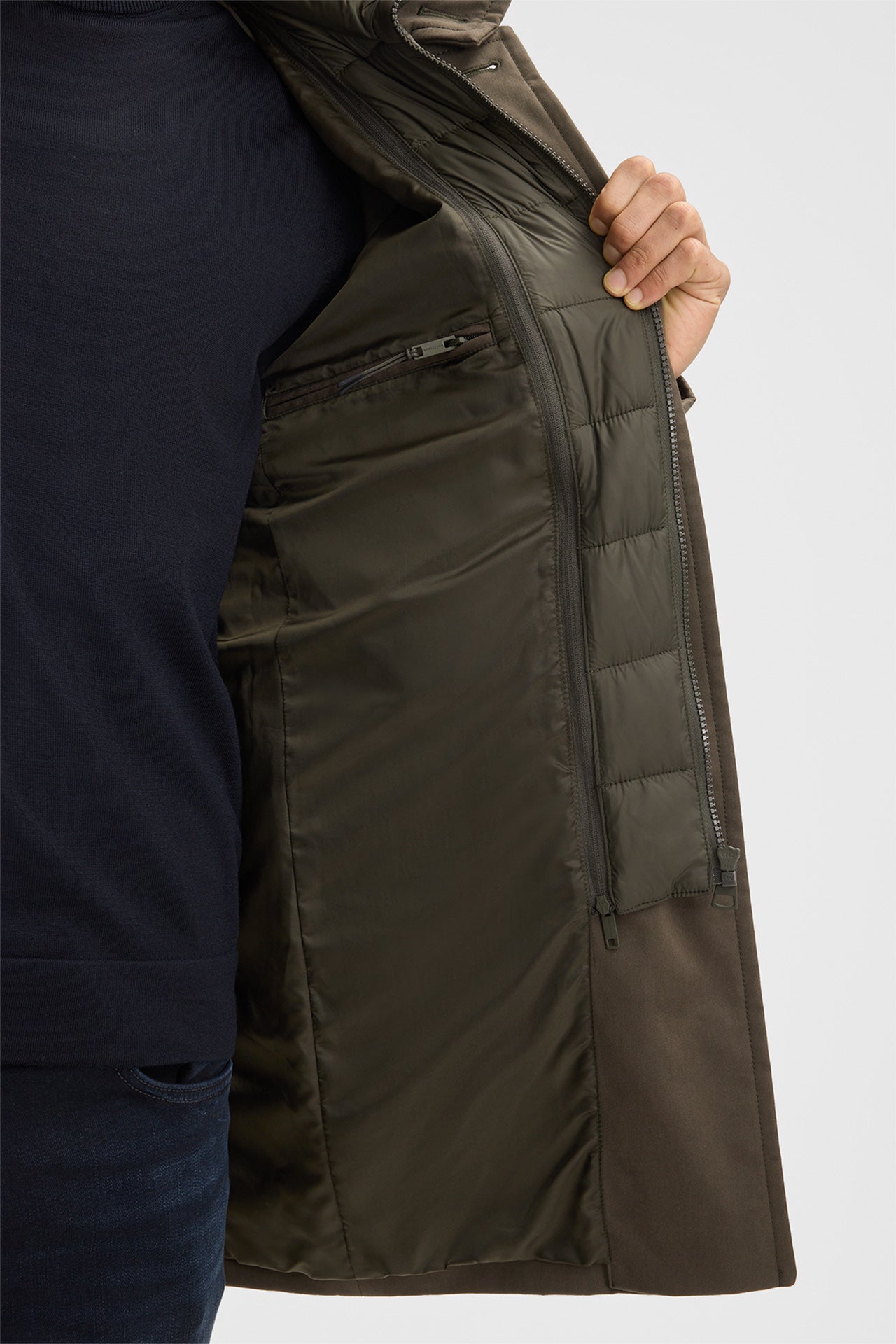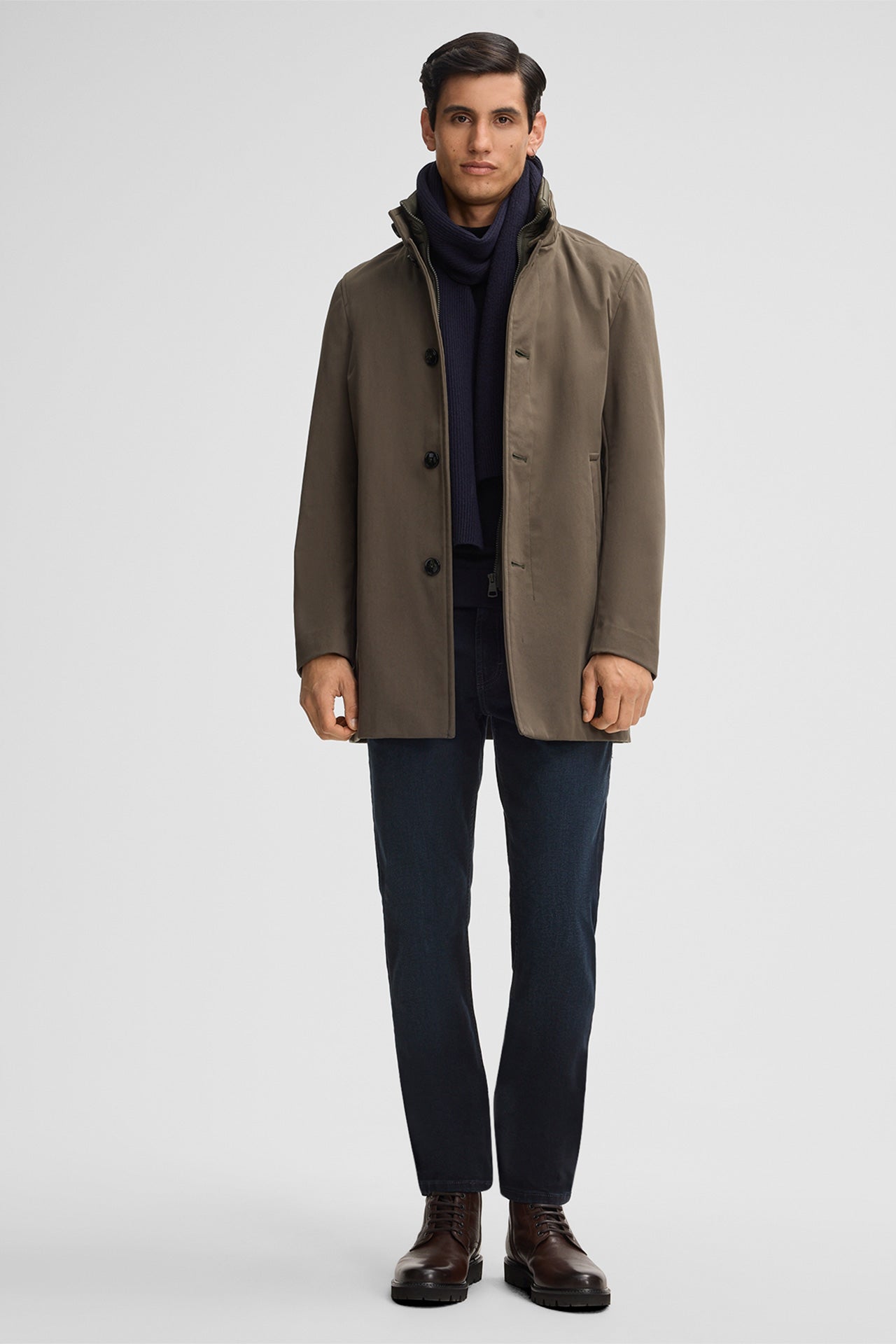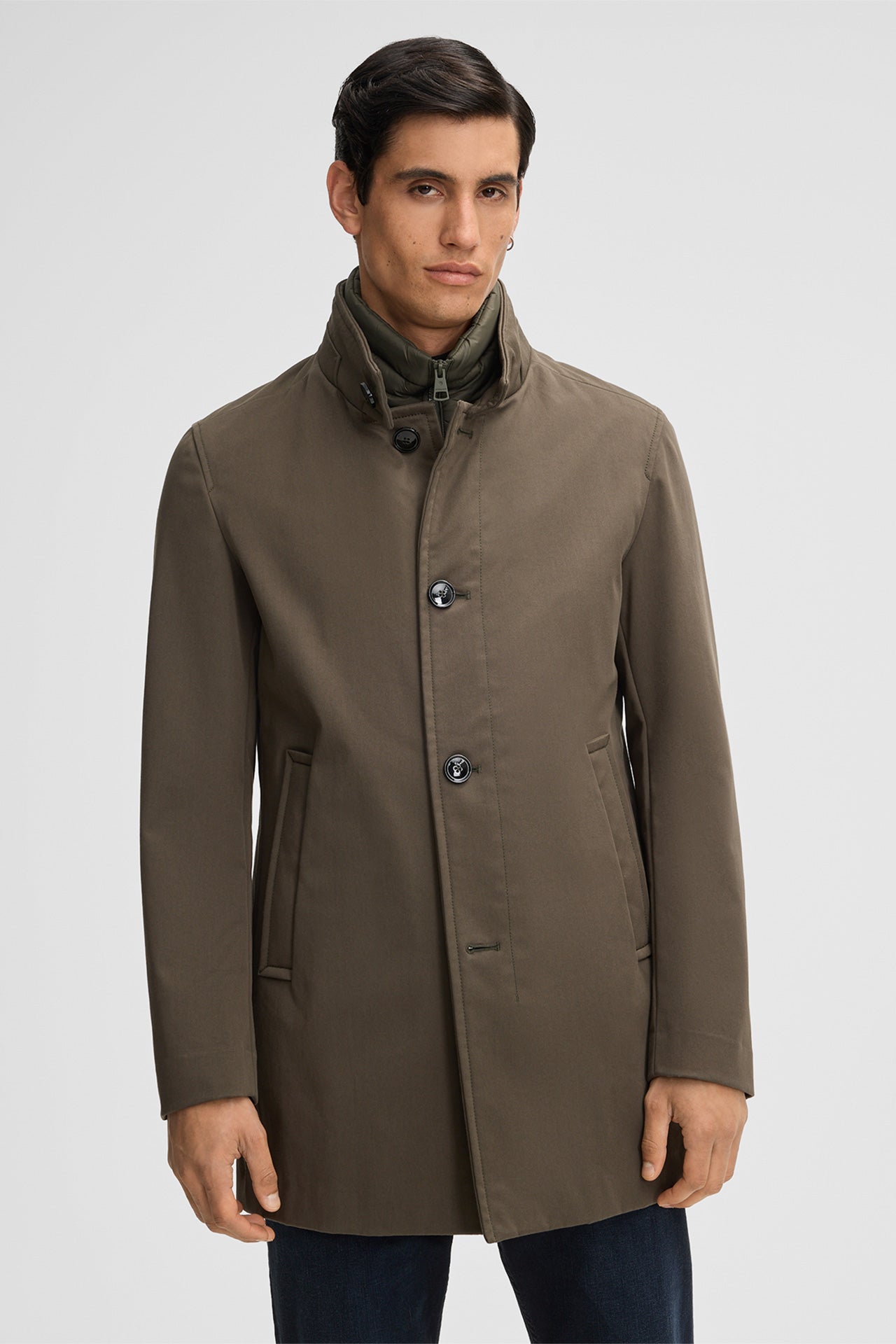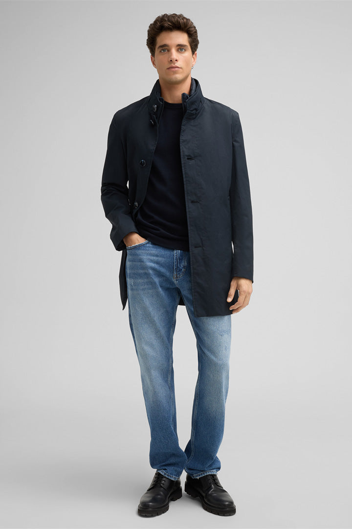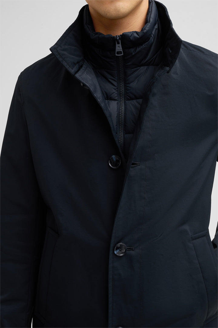 The Finlay coat with a stand-up collar and zip-on quilted inlay creates a comfortable look. Flowing partial lining and a slit ensure supreme comfort.