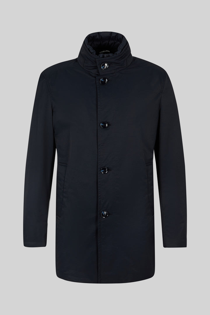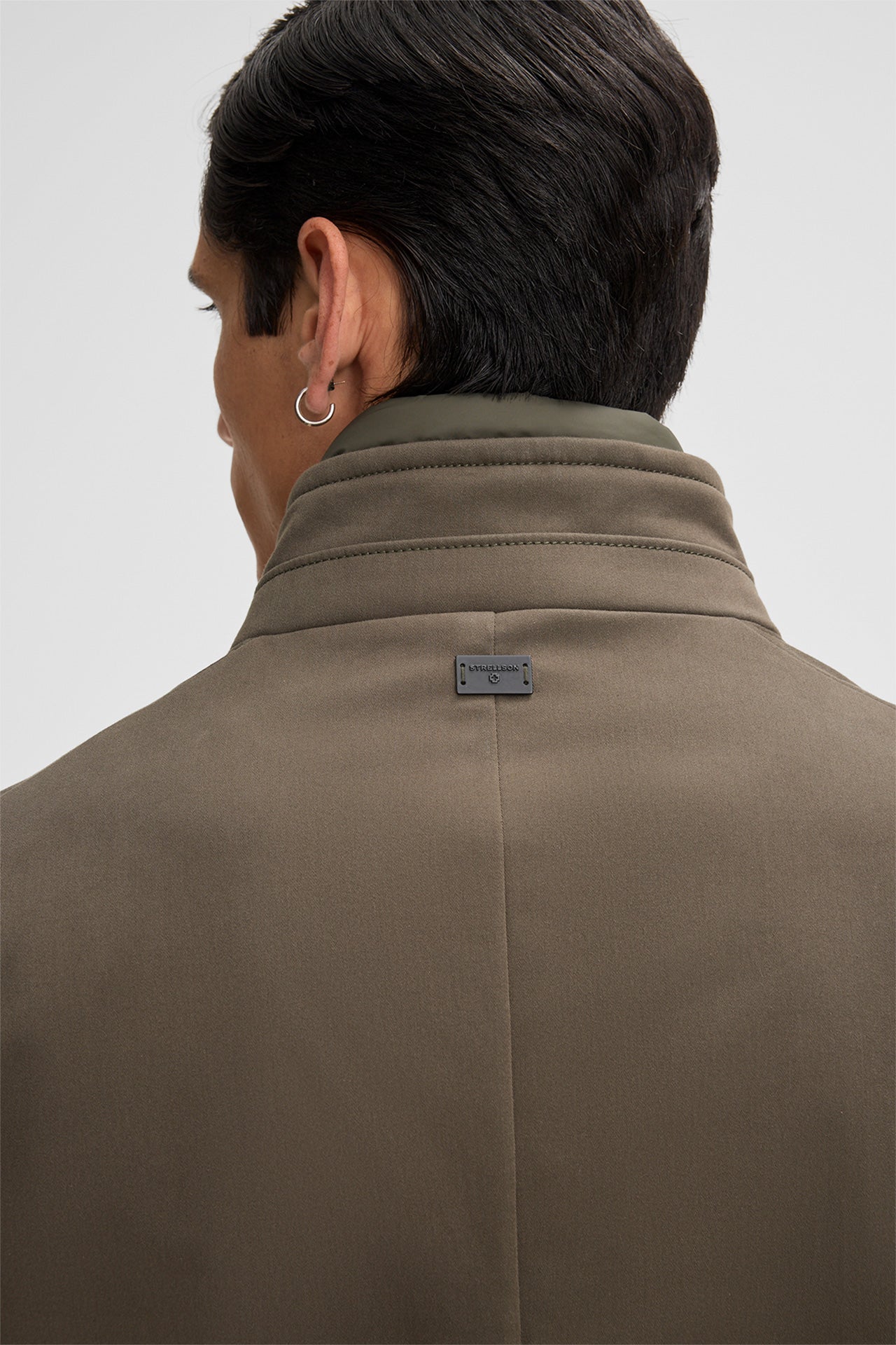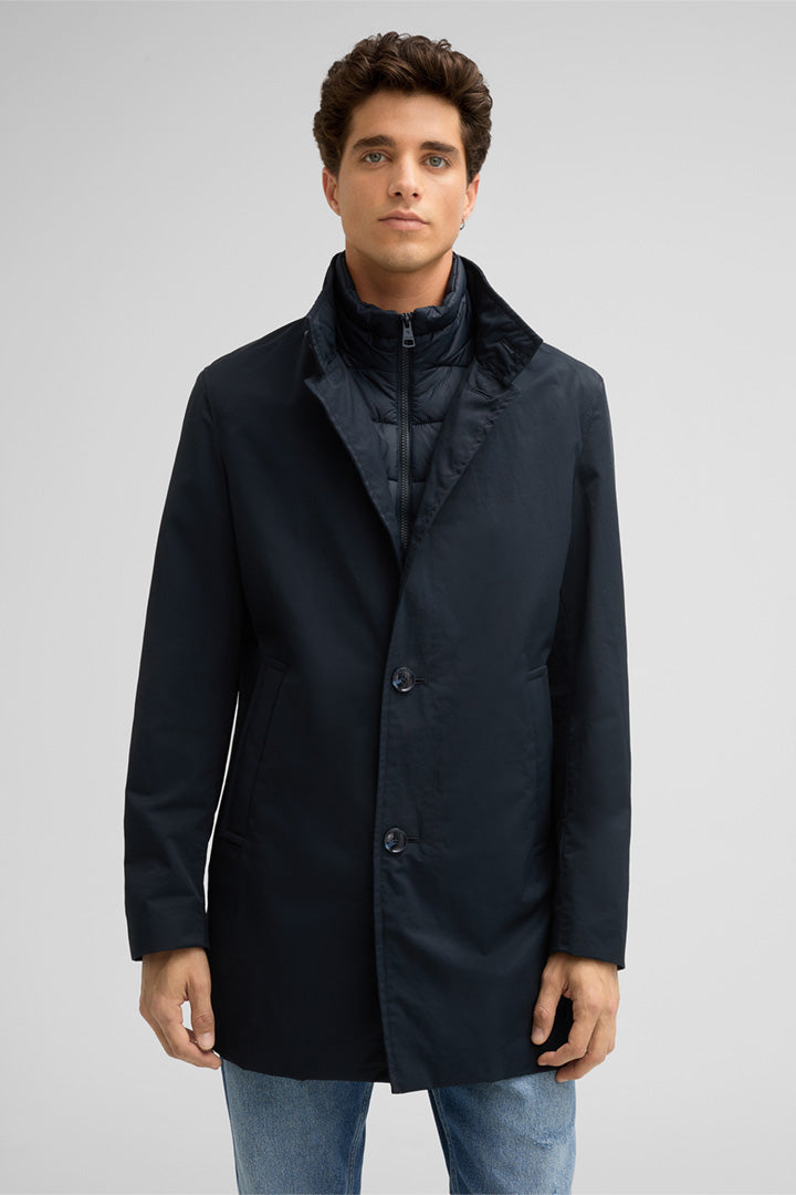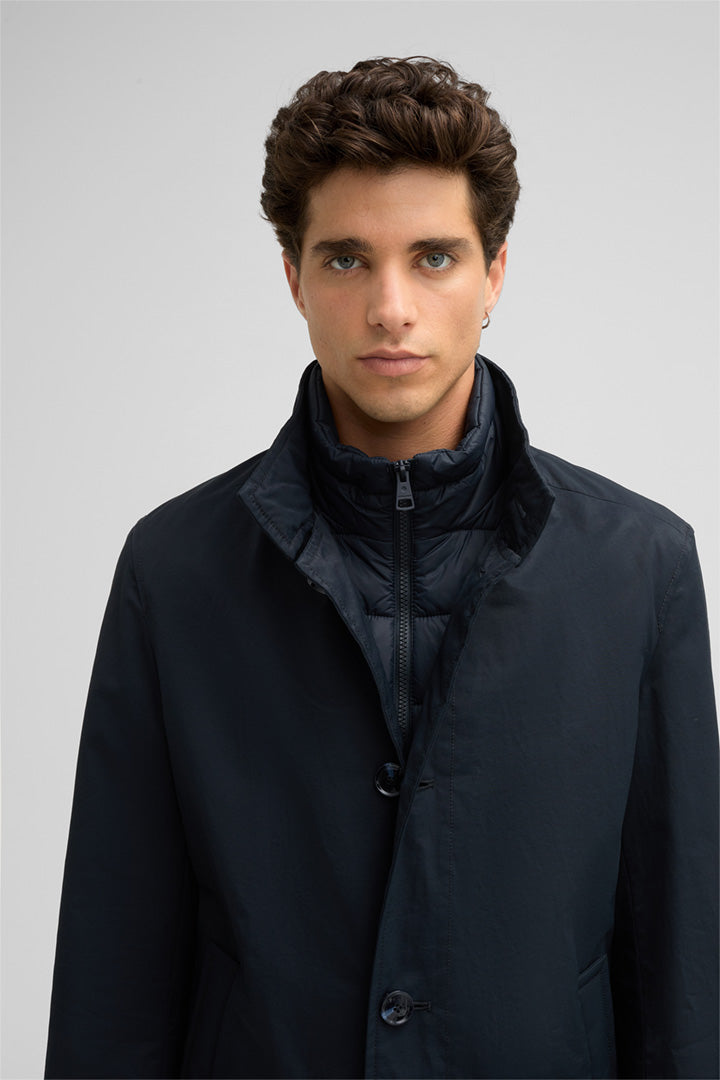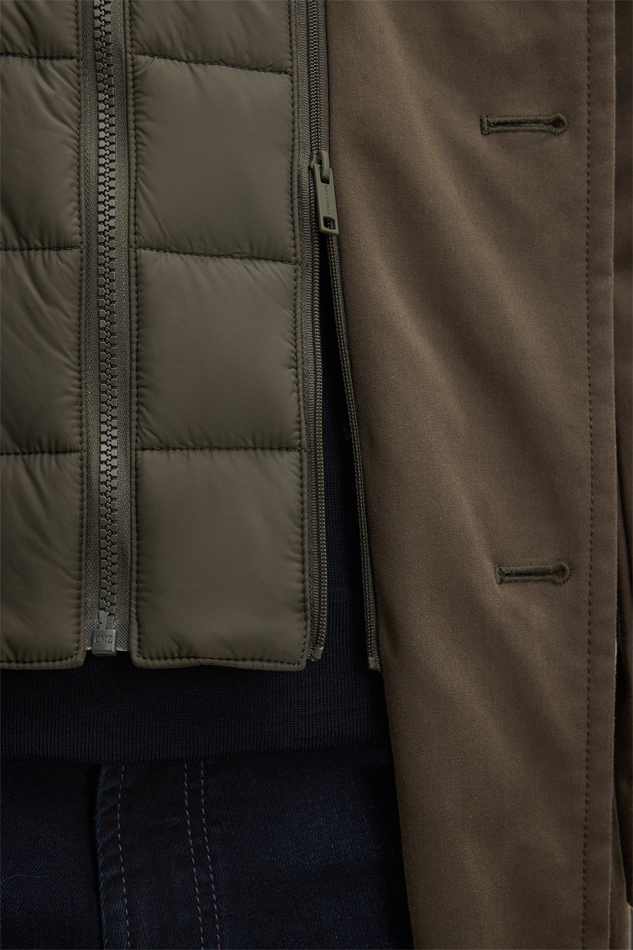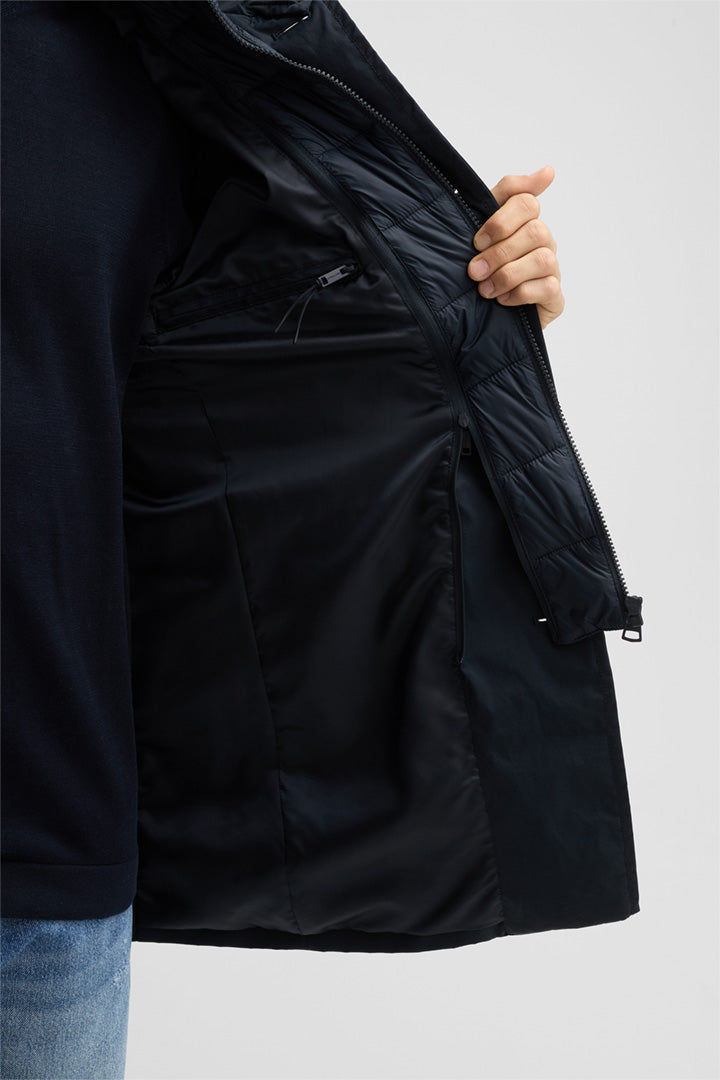 The Finlay coat with a stand-up collar and zip-on quilted inlay creates a comfortable look. Flowing partial lining and a slit ensure supreme comfort.