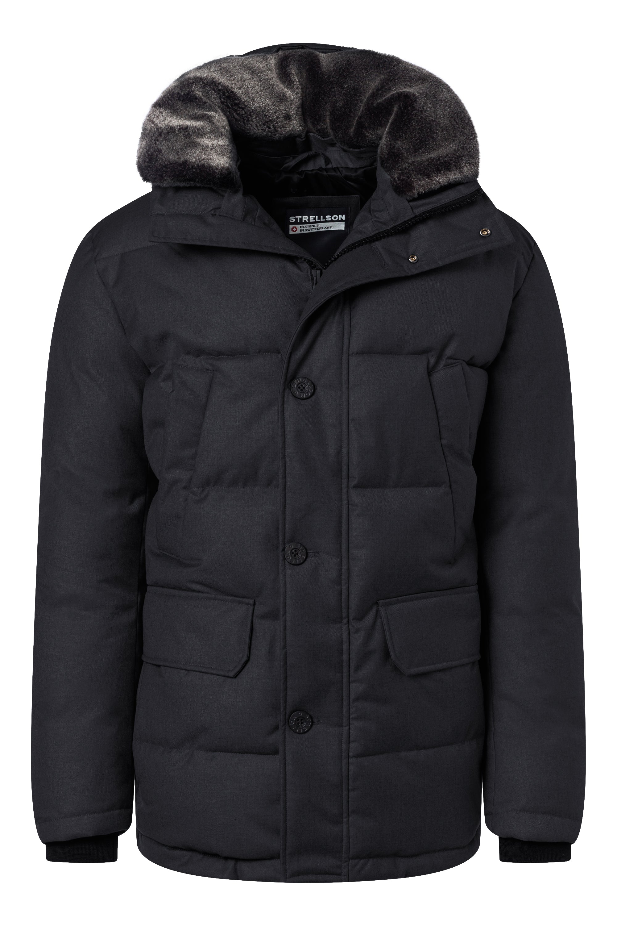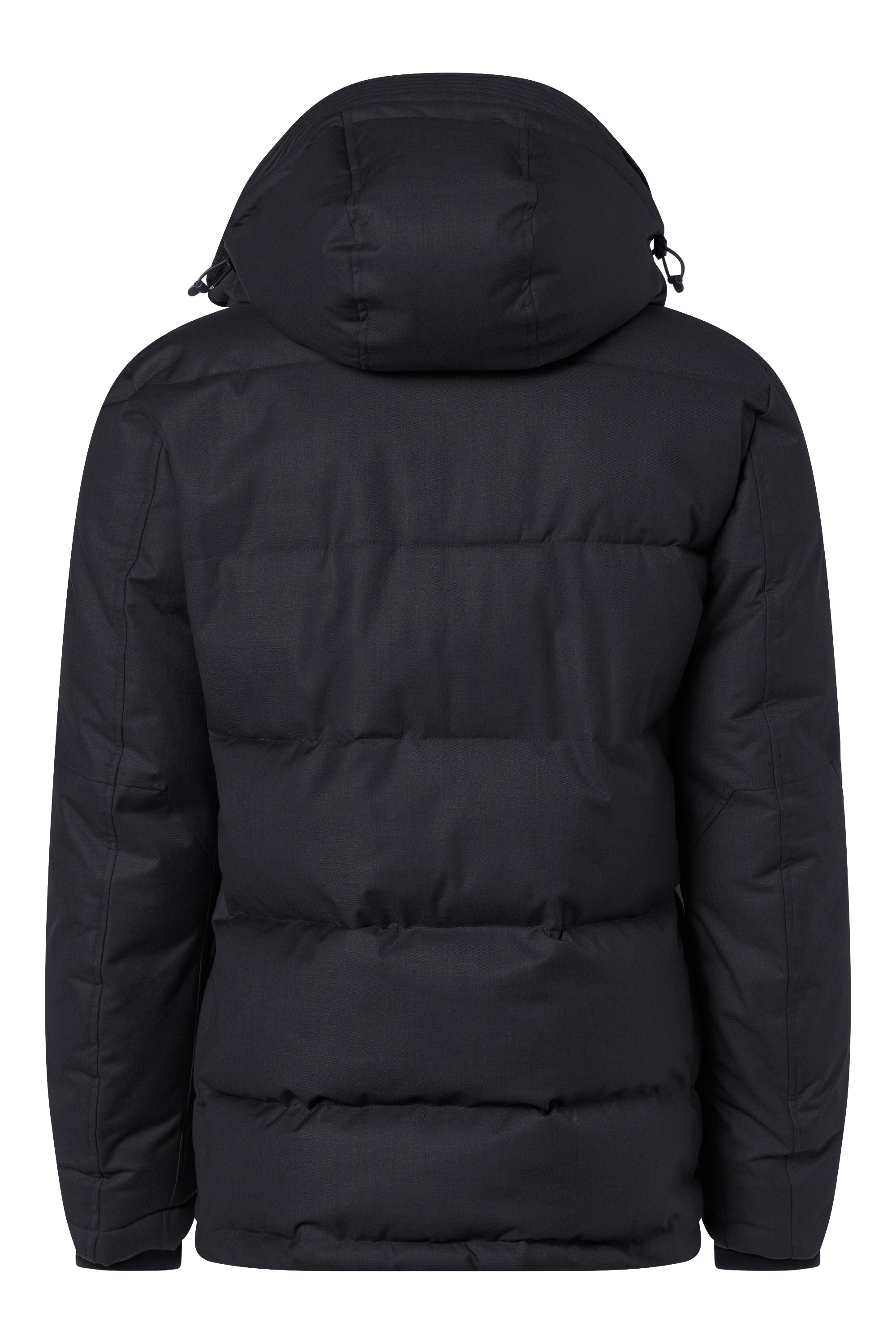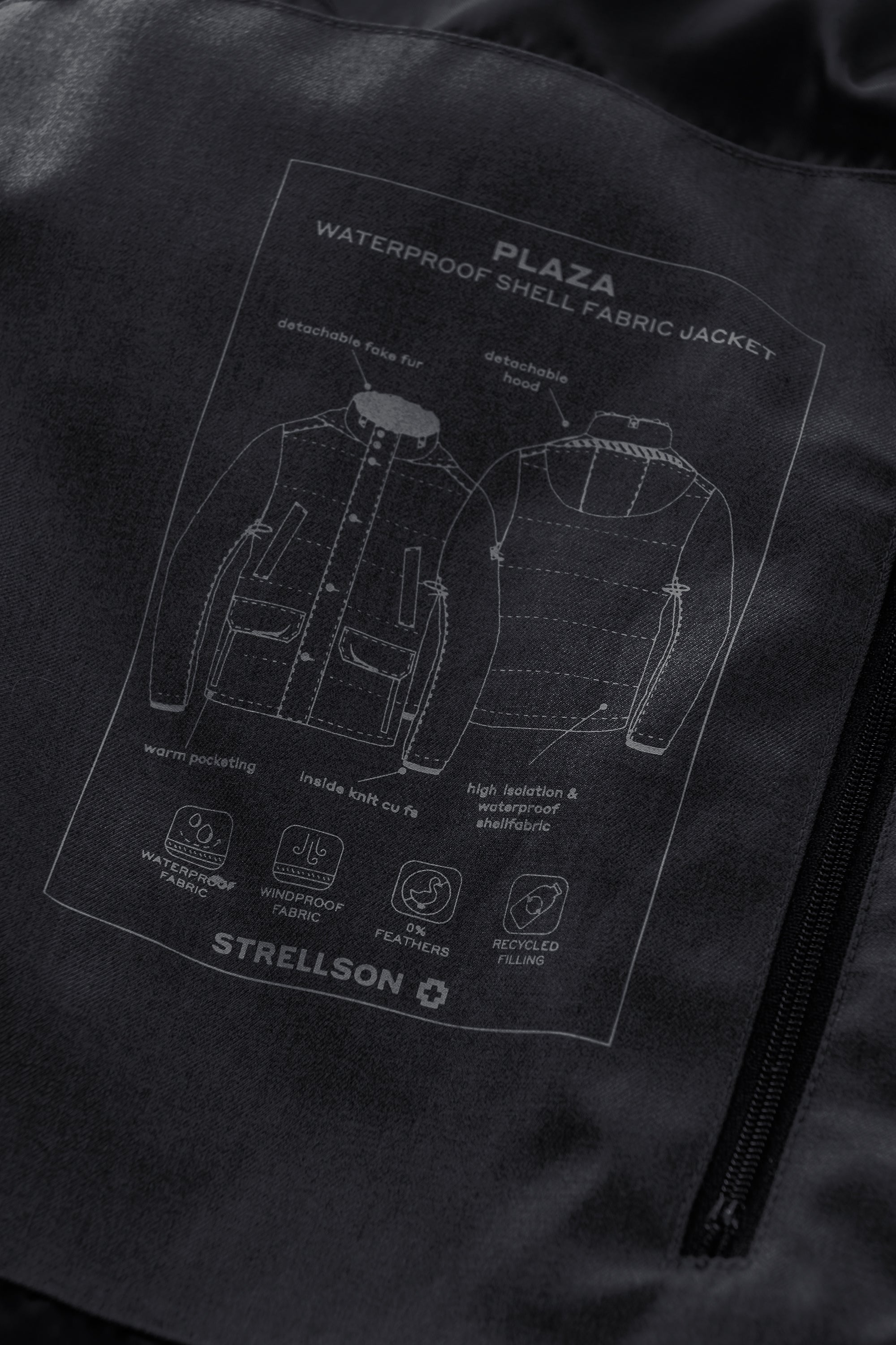 - Quilted jacket with stand-up collar and zip-off faux fur trim